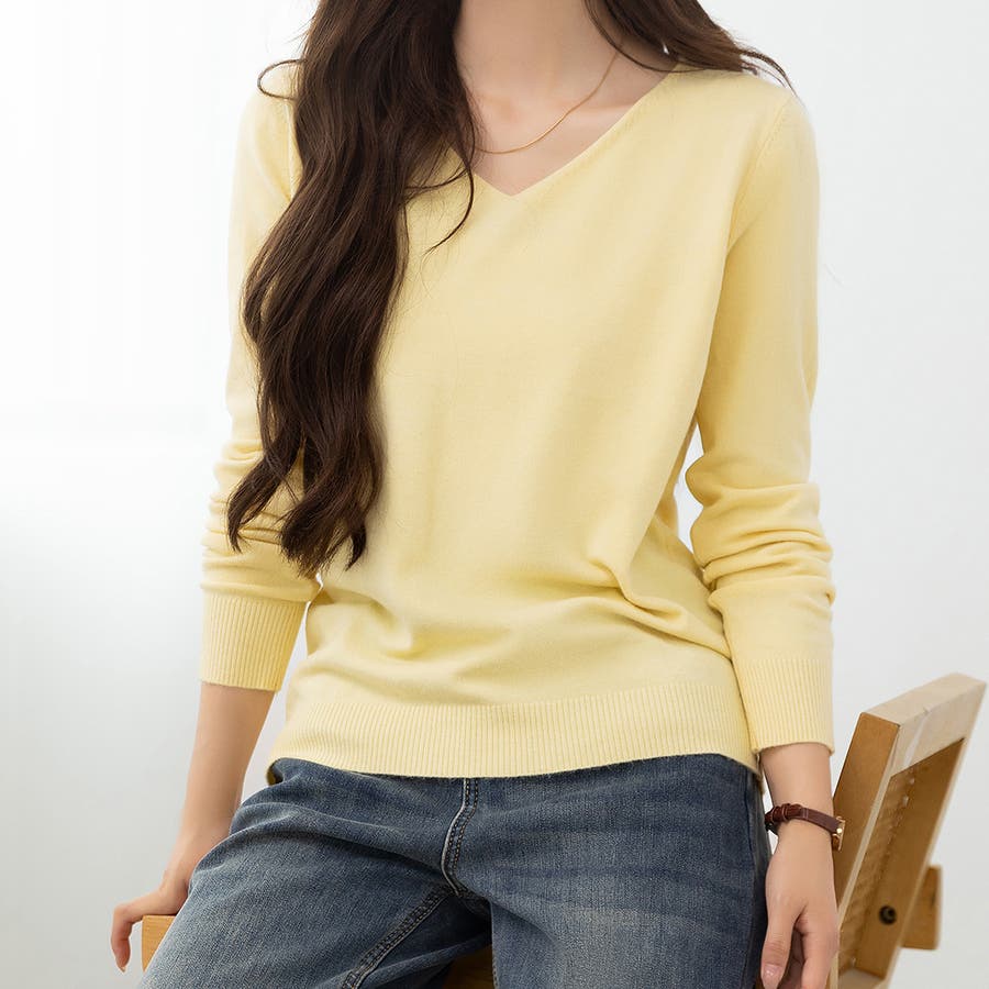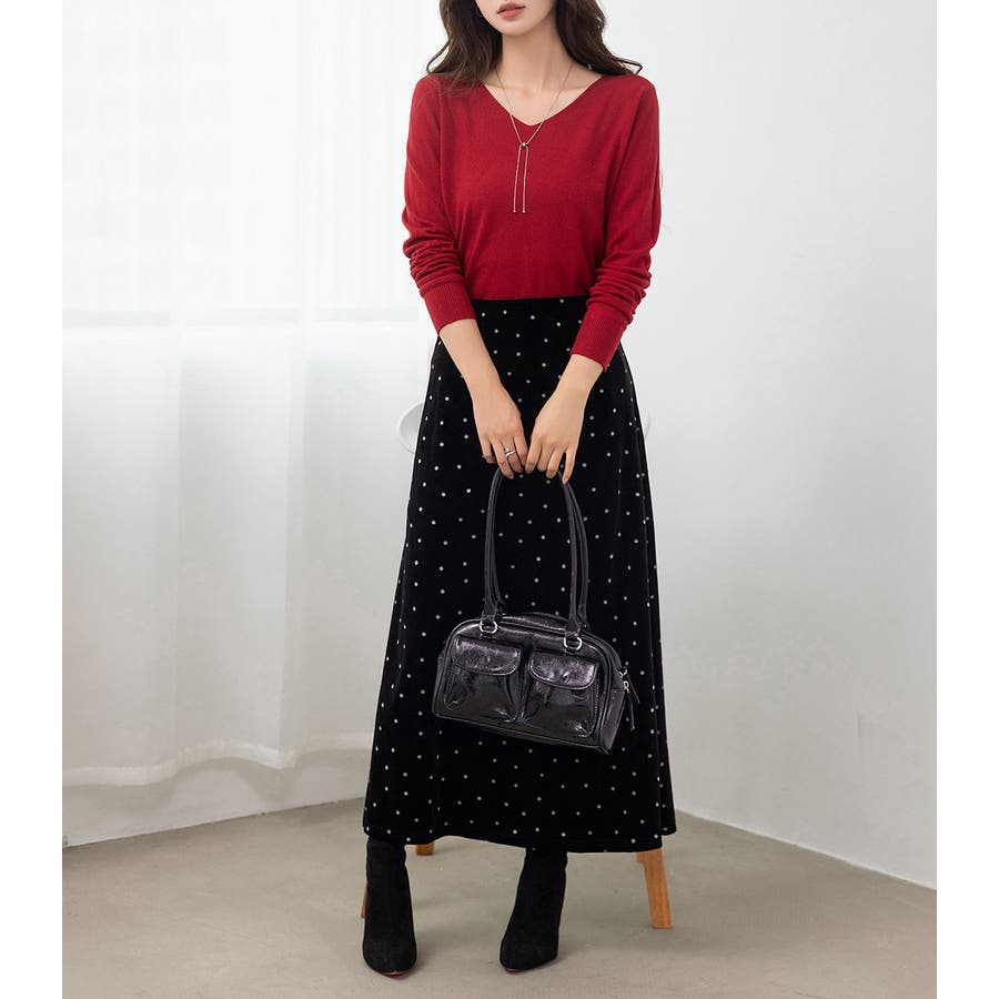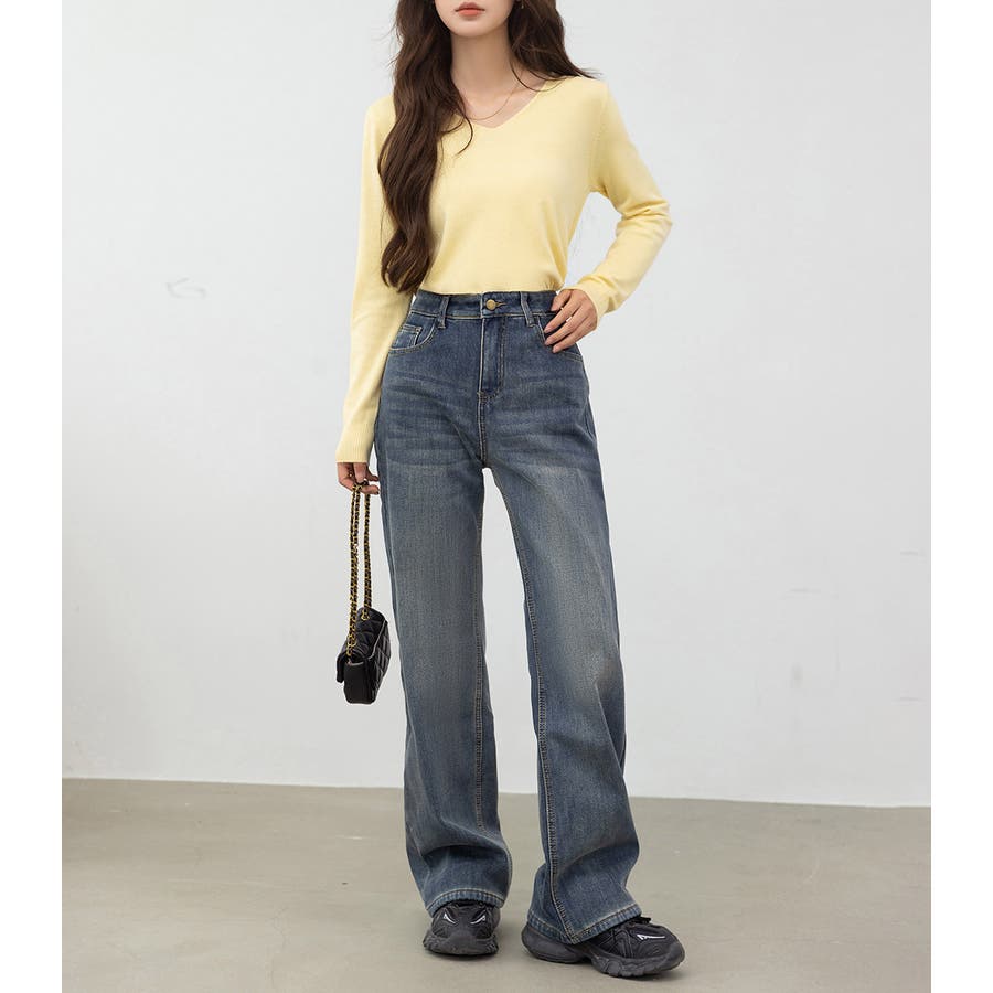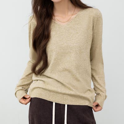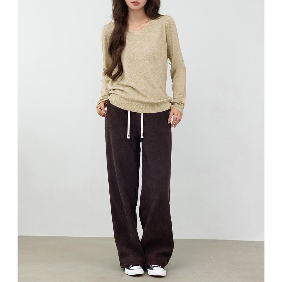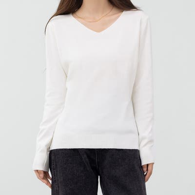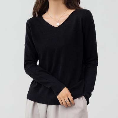 襟ぐりが広めのVネックでデコルテ周りを綺麗見せ♪