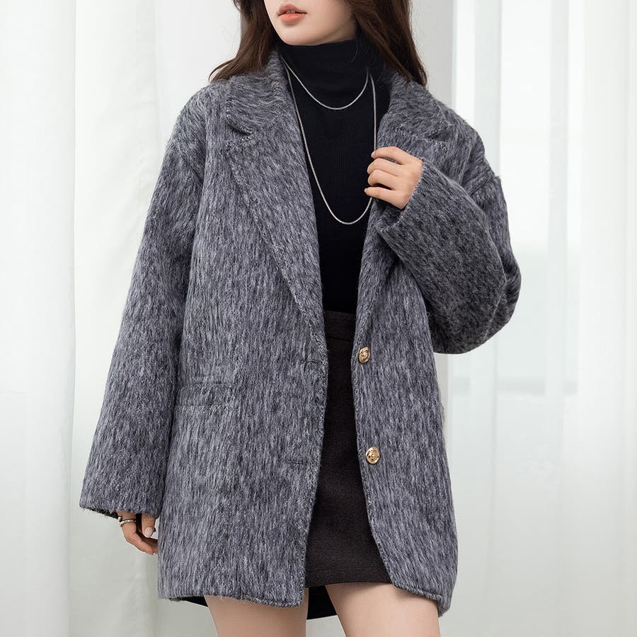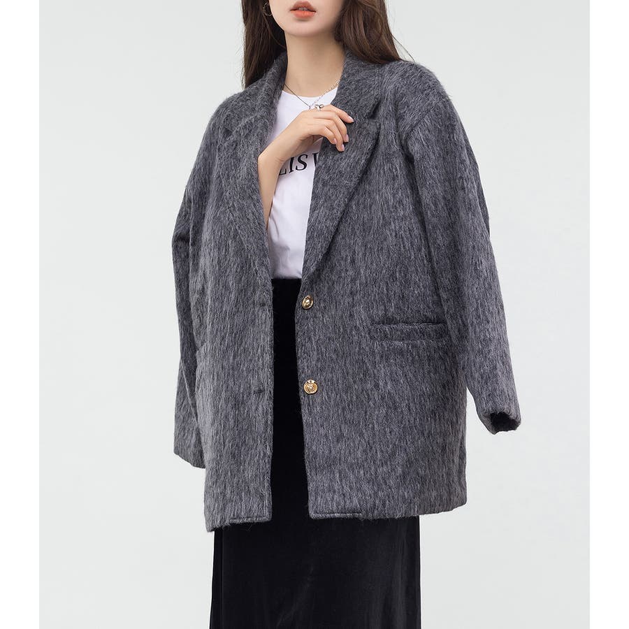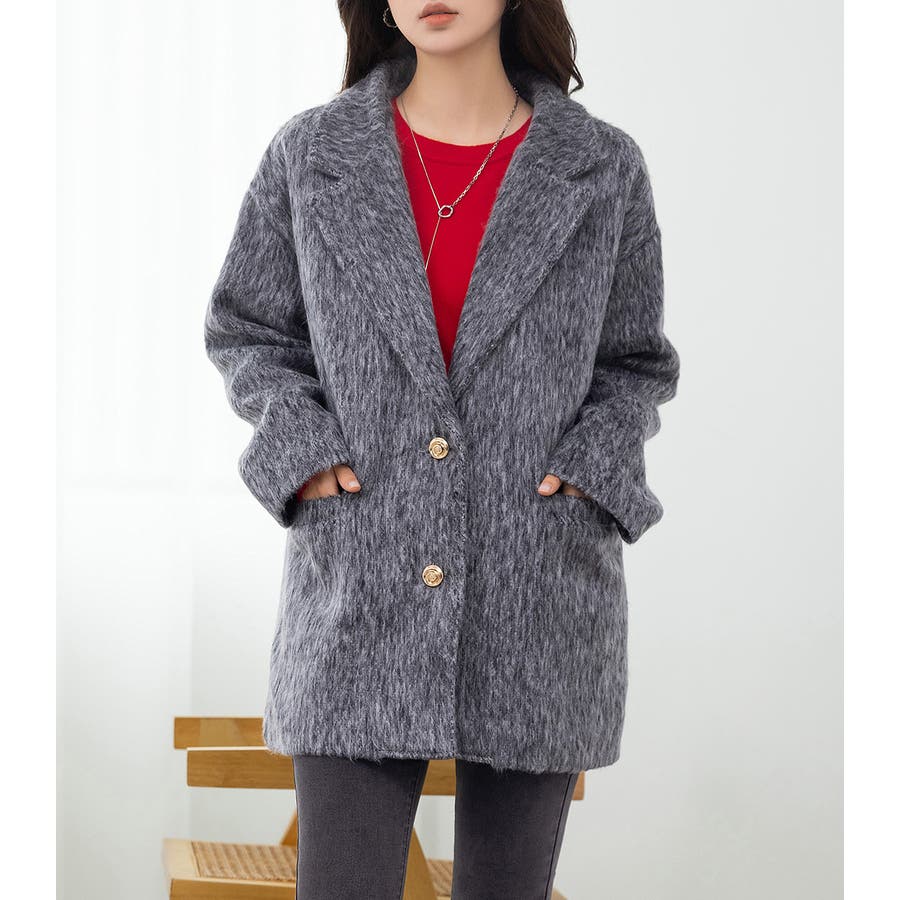 「リッチ感ある金ボタン」ジャケット シャギー ミックス