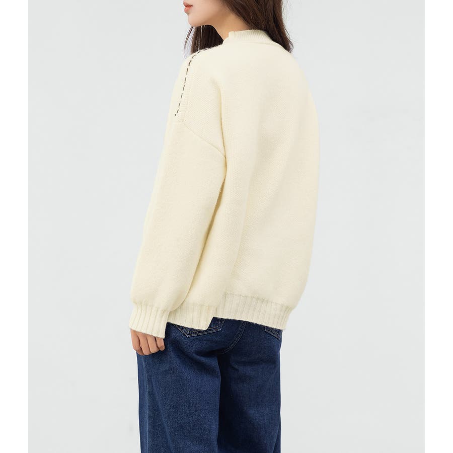 ゆったりとしたデザインながらも中厚手で暖かみのある程よい厚みのニット生地なので冬でも快適。
