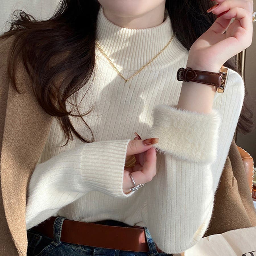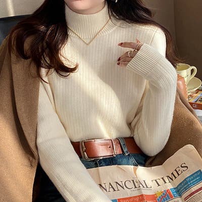シンプルながらも表情のあるリブ編みが魅力のハイネックニットプルオーバー。