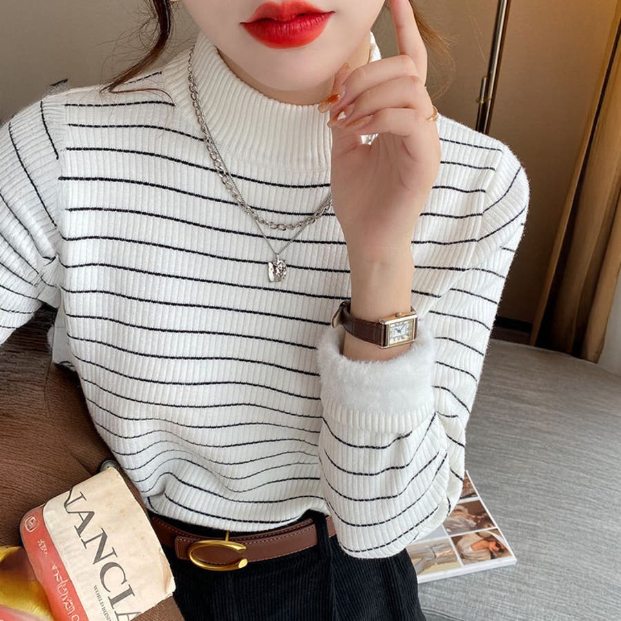 「インナーいらずのぬくもり」裏起毛 ニット リブ