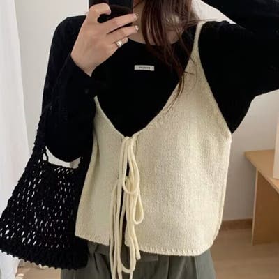 「2wayで着回し楽しむ」ニットビスチェ キャミソール レディース