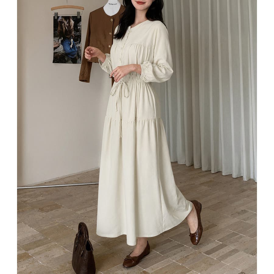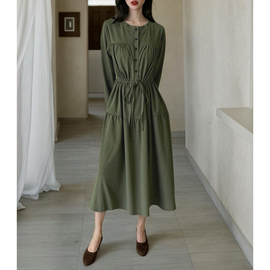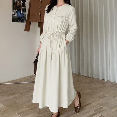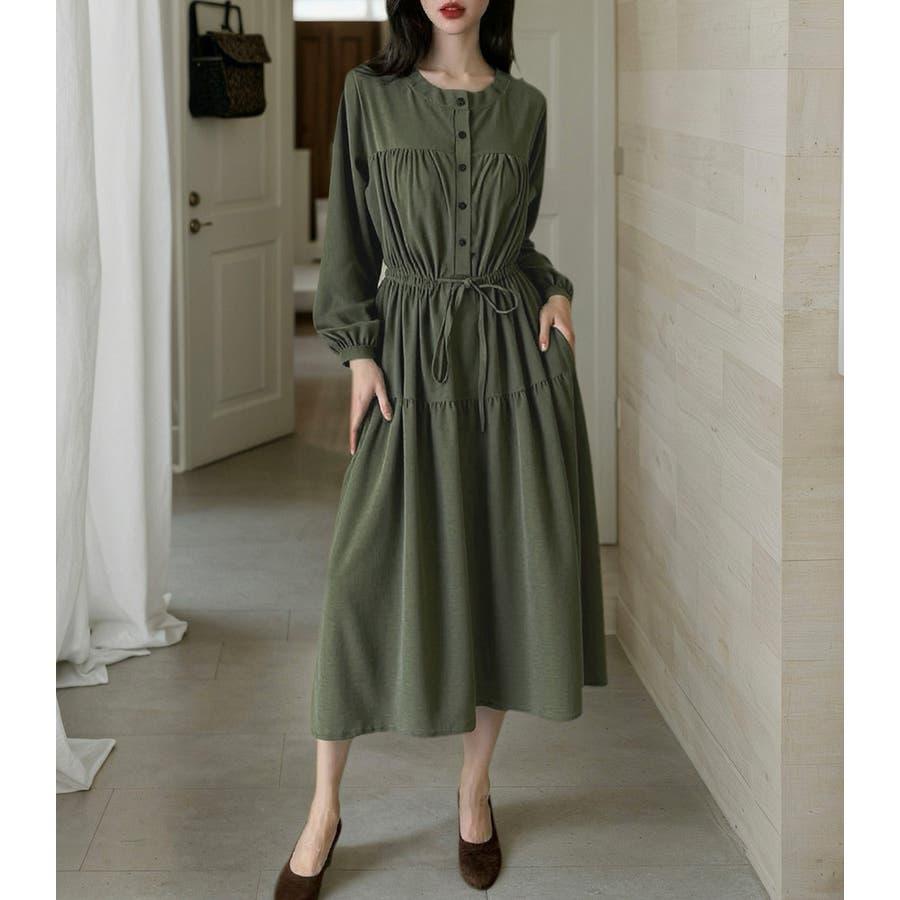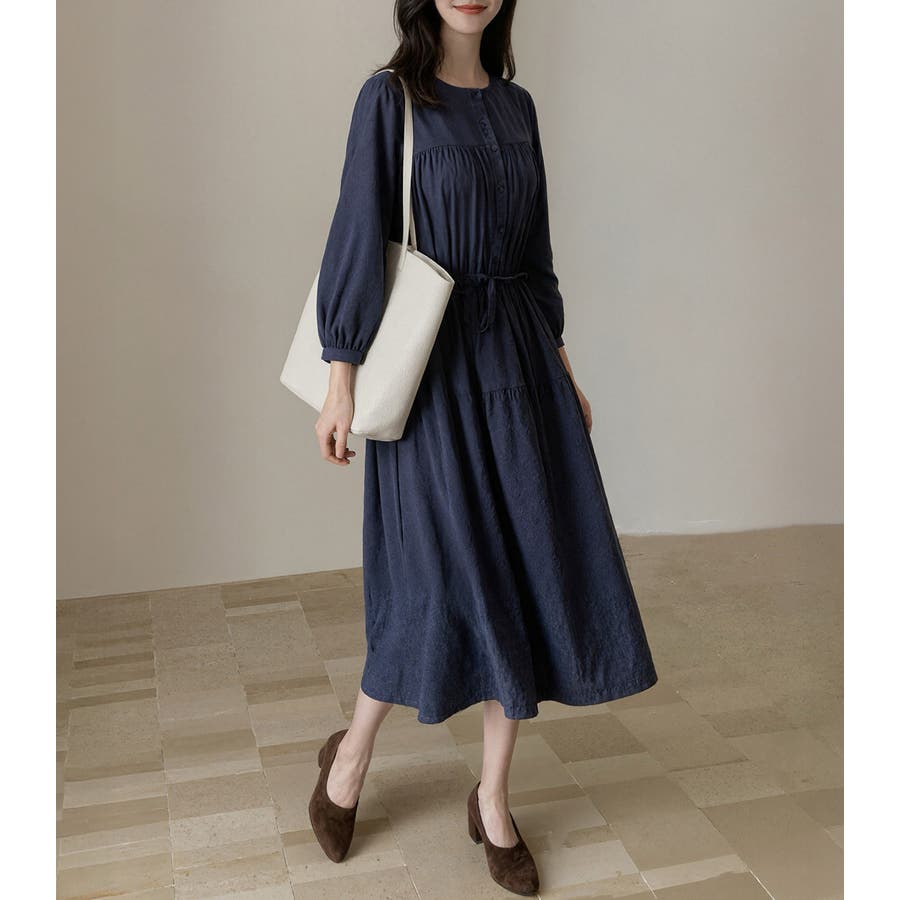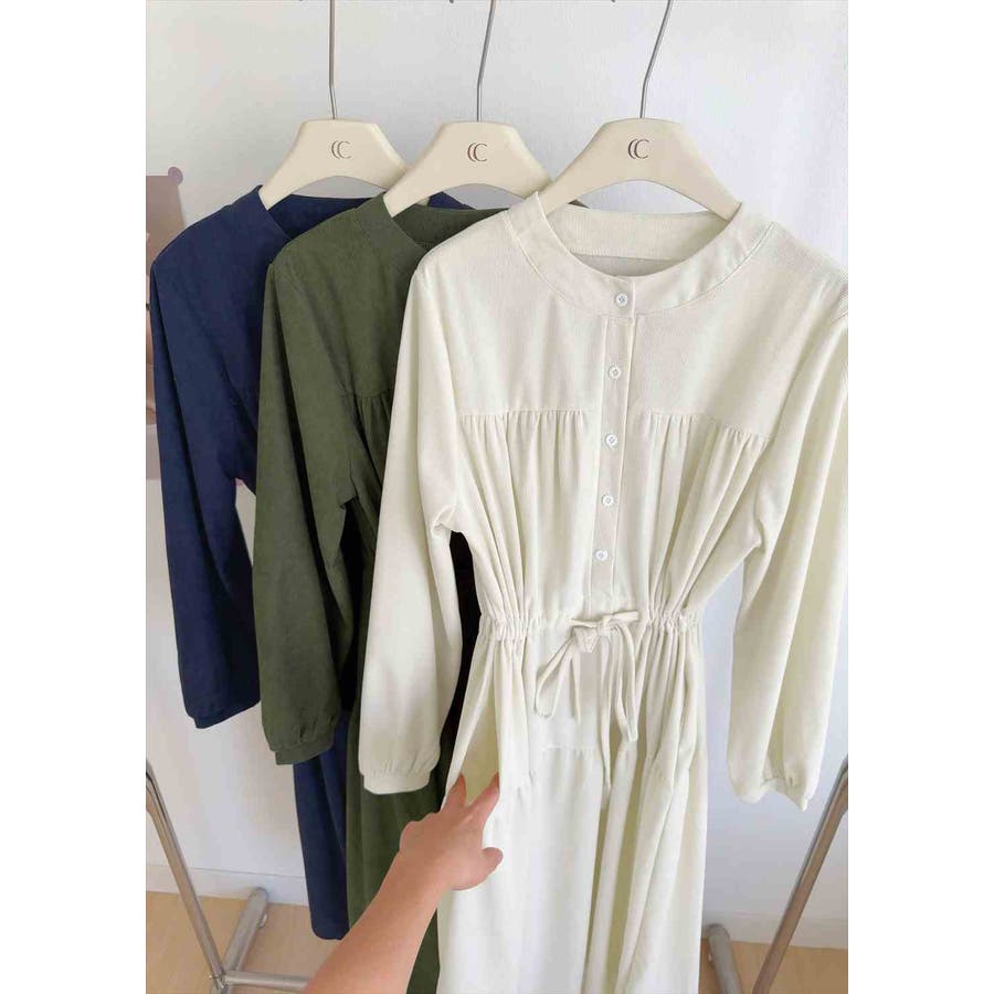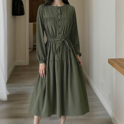 「ウエストマークで見え方変化」ワンピース ミモレ丈 コーデュロイ