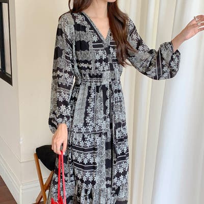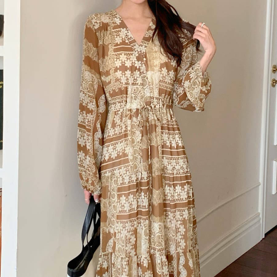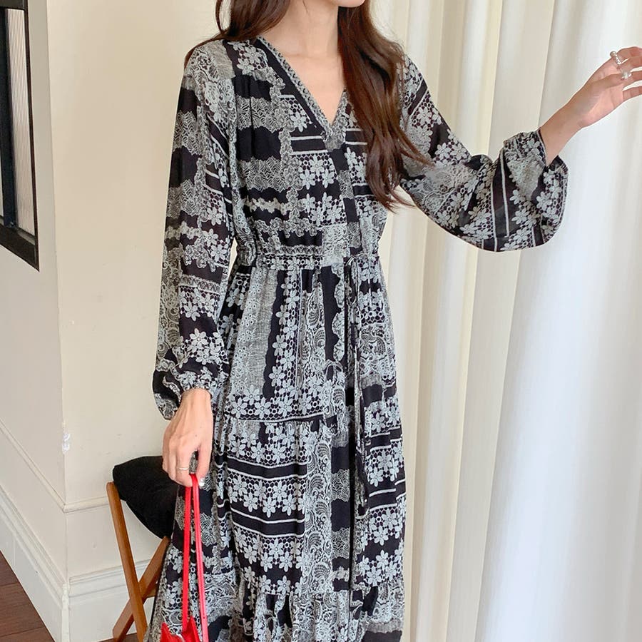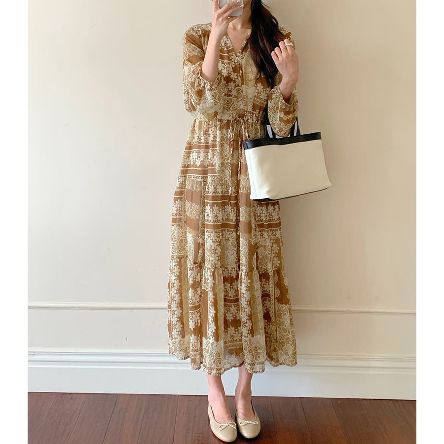 「カシュクールで首回りを快適に」ワンピース ロング丈 ティアード