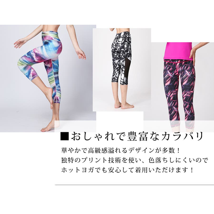 独特のプリント技術を使い、色落ちしにくいのでホットヨガでも安心