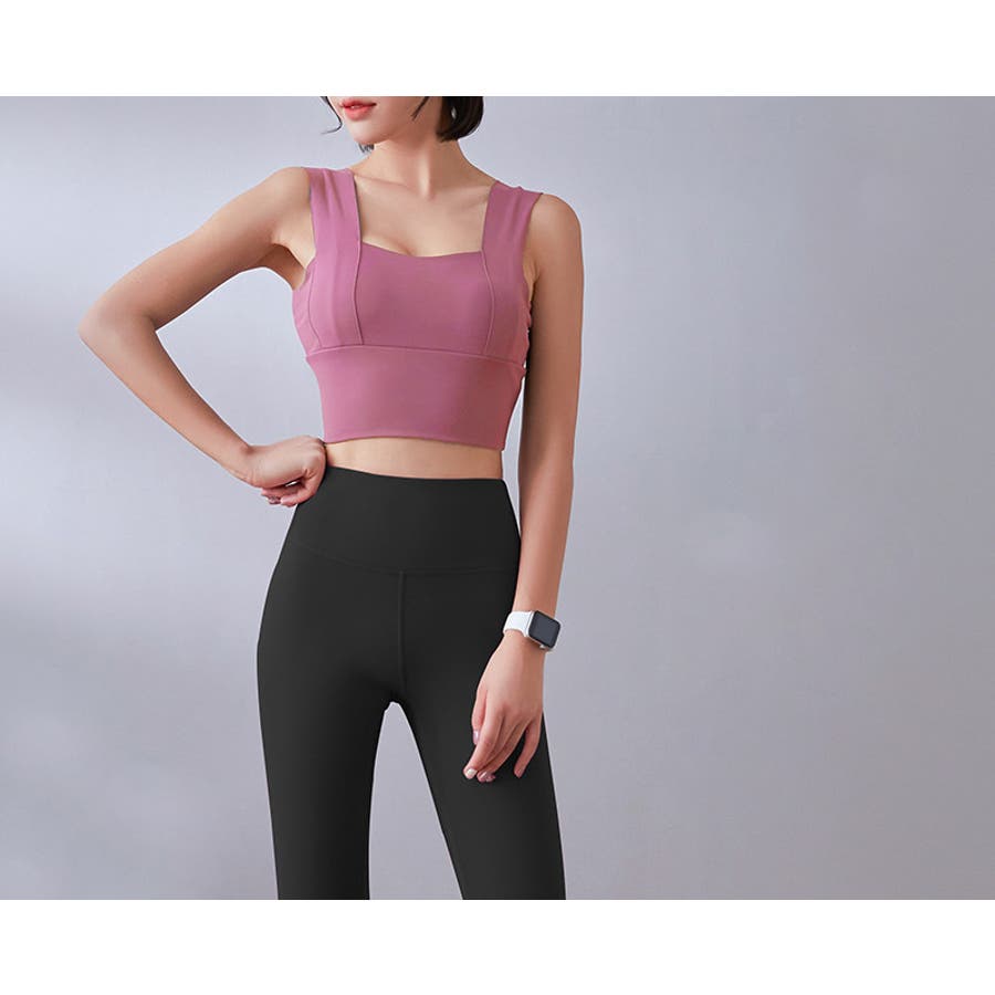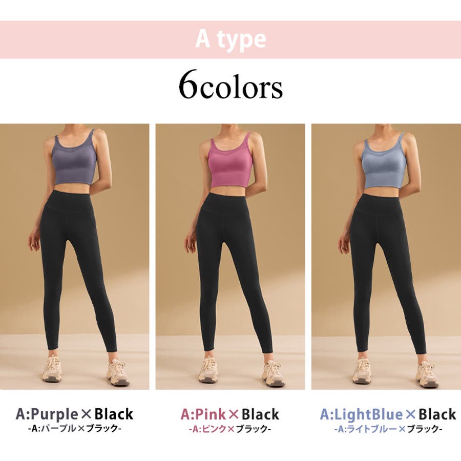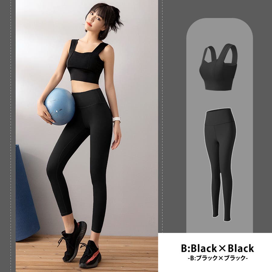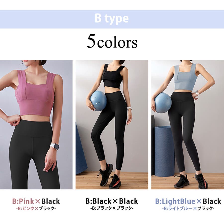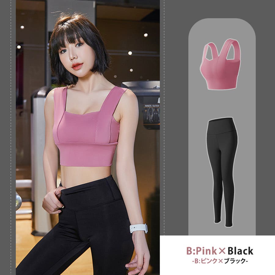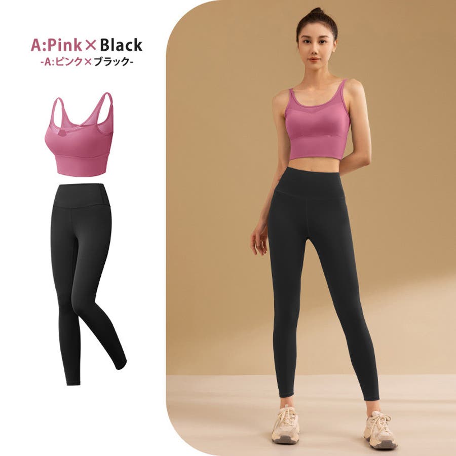 【A:ピンク×ブラック】ヨガウェア 上下セット 全11色