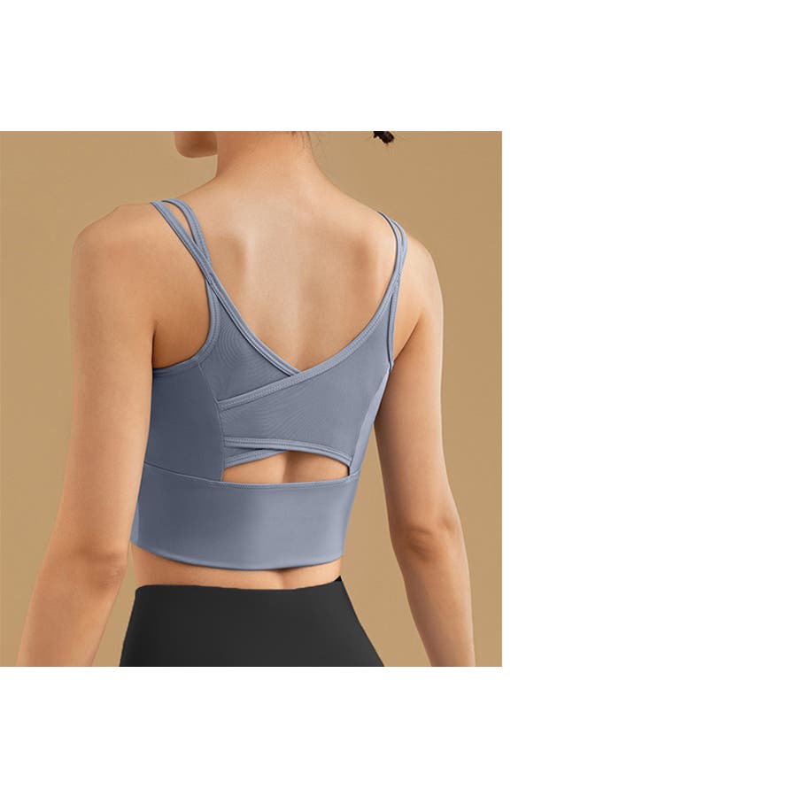 メッシュ生地を取り入れたバックカットアウト&クロス風デザイン
