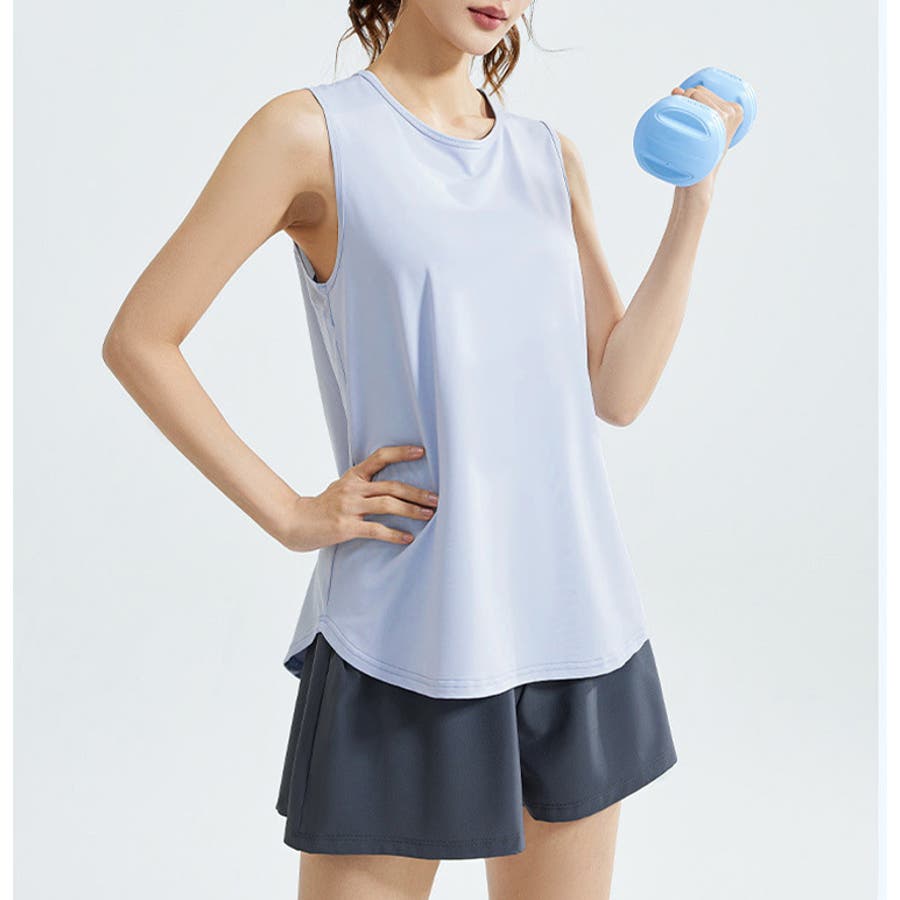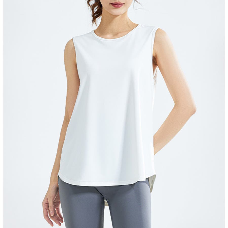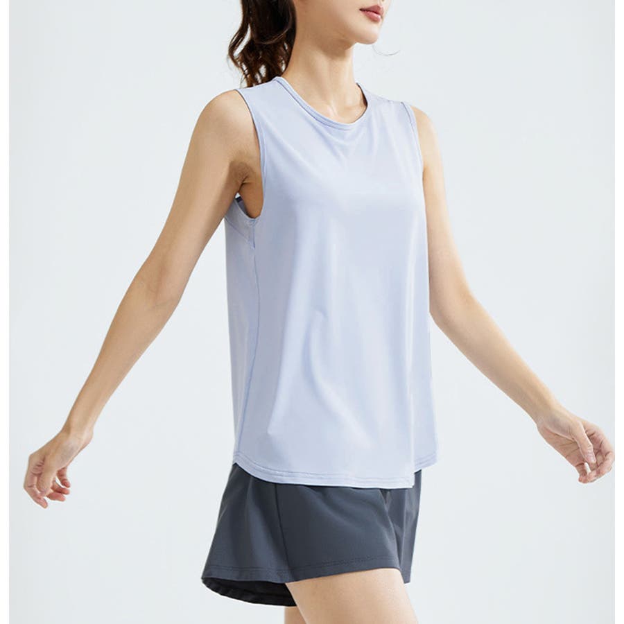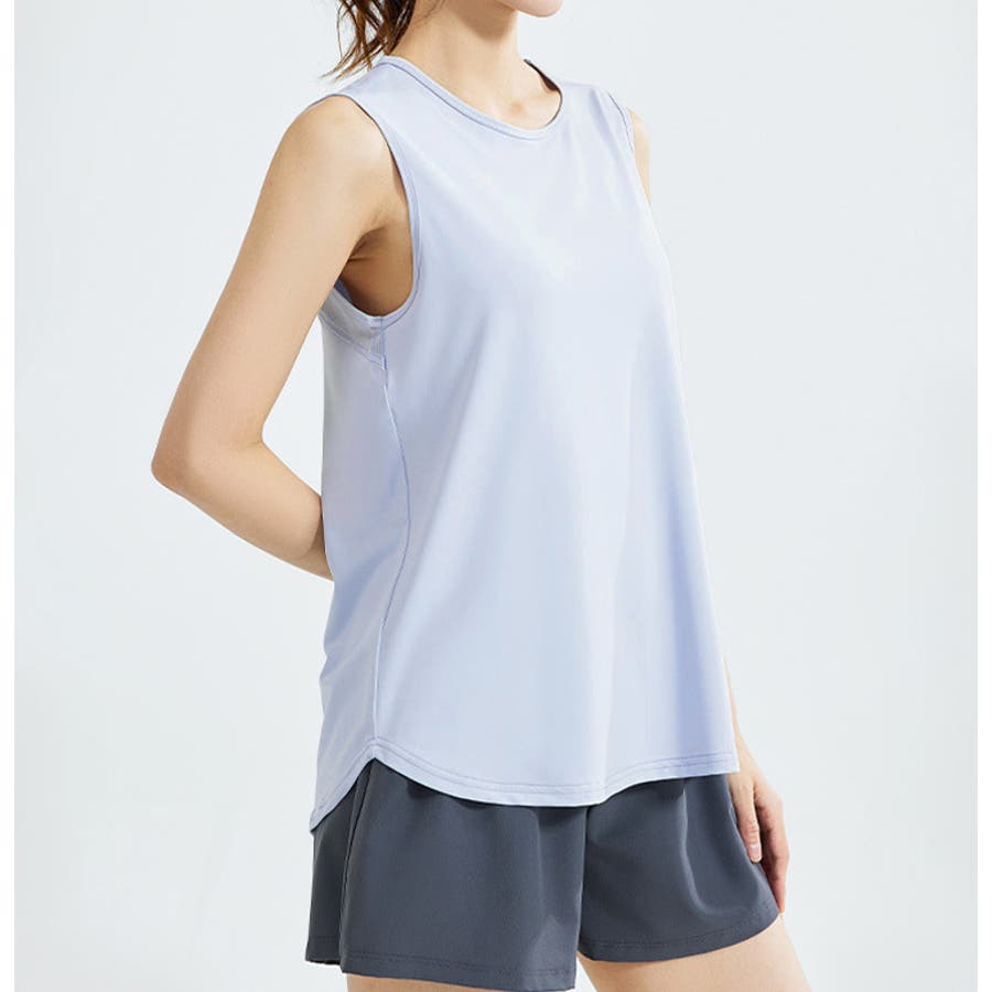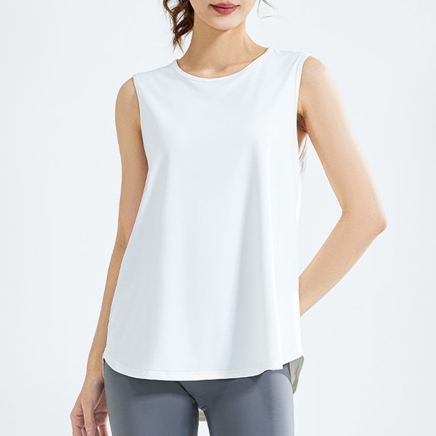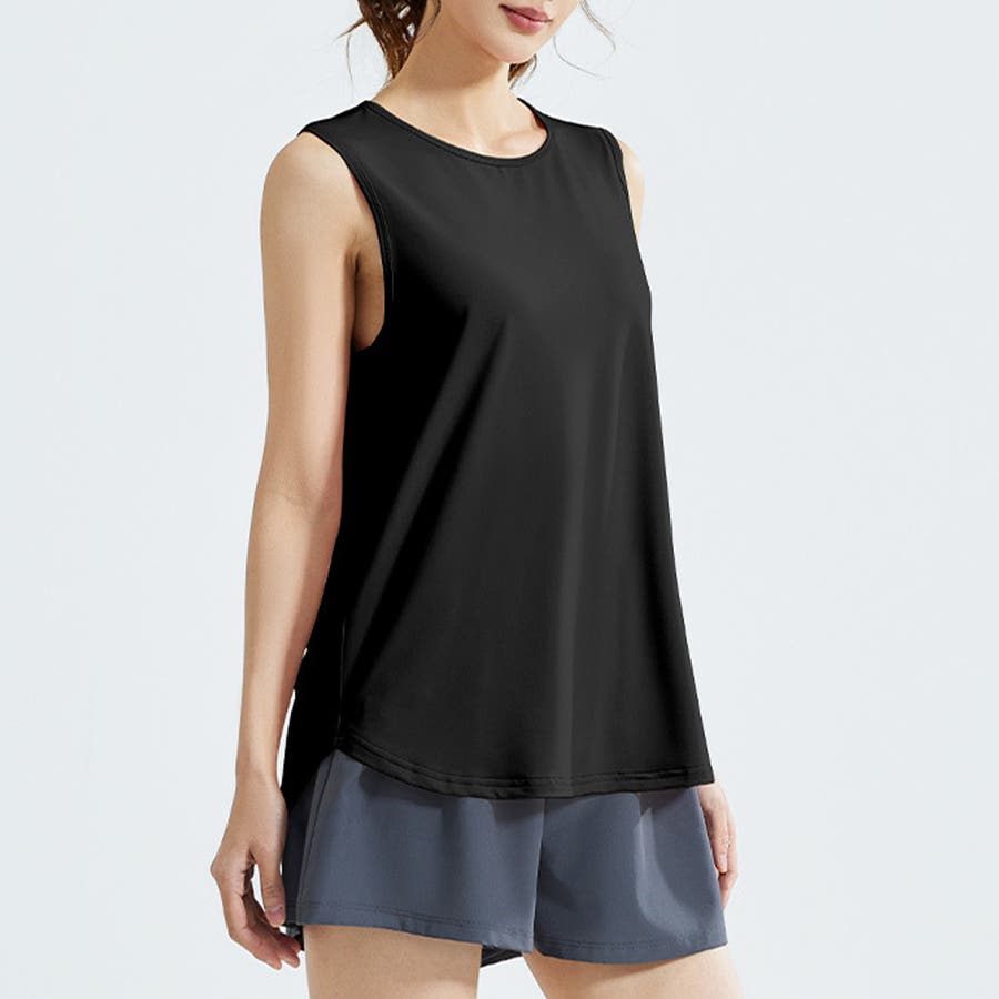 フィットネスやヨガで着まわしたくなる体型を拾いにくいスッキリなタンクトップ。