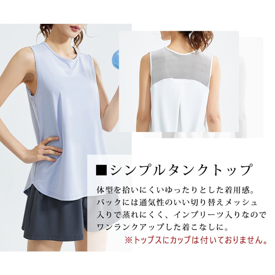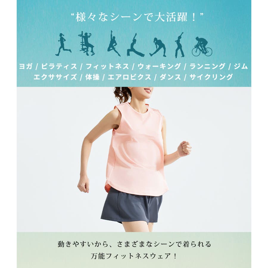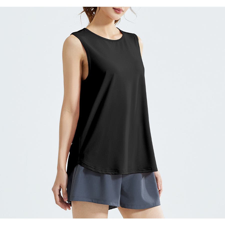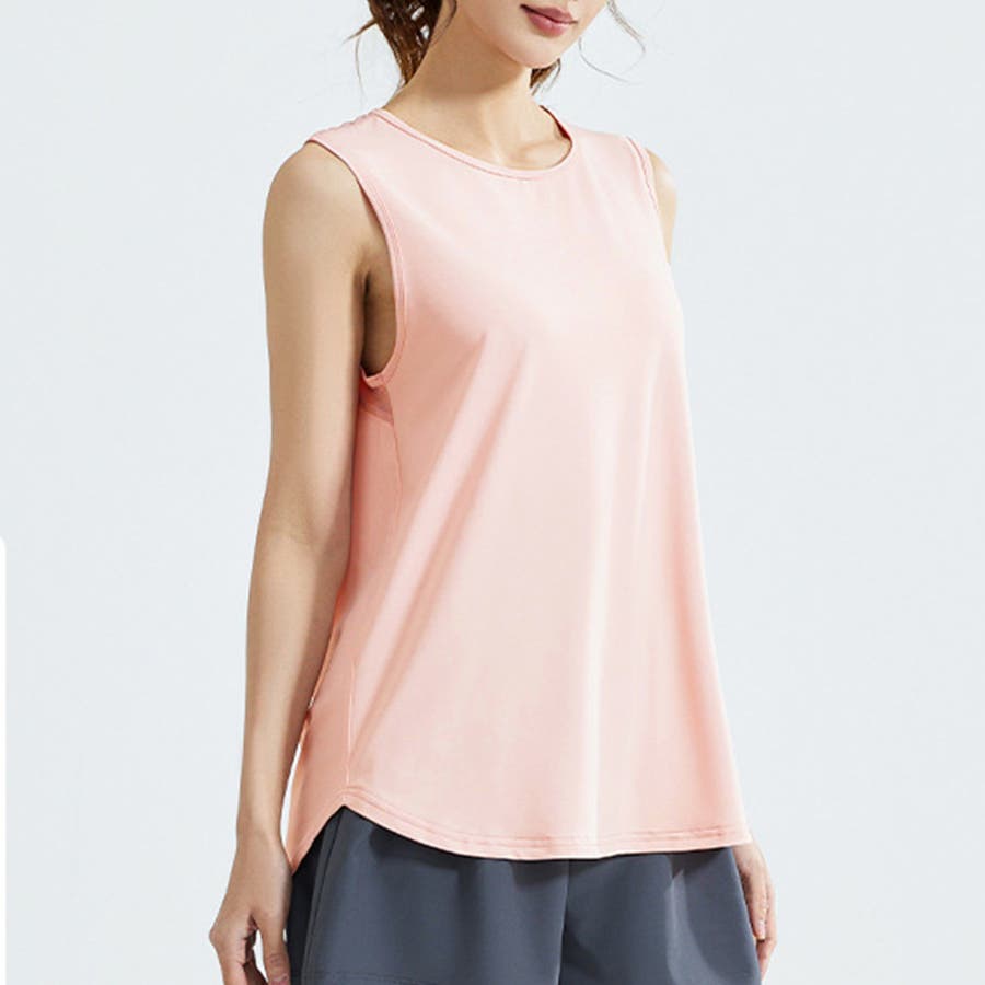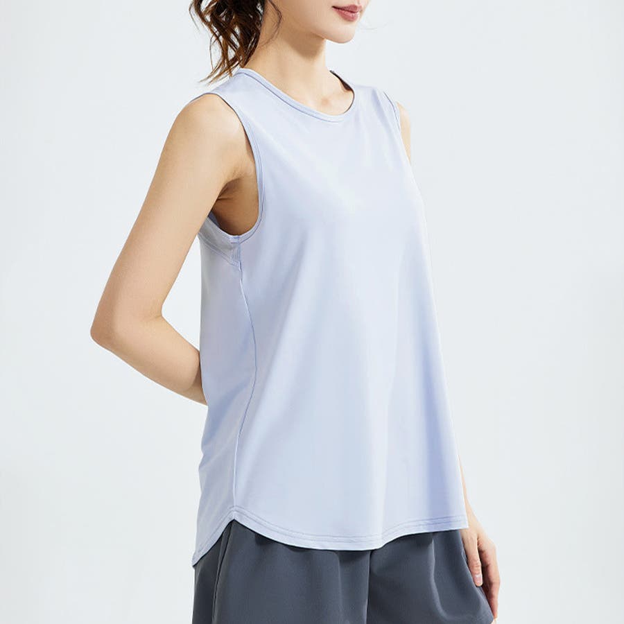 フィットネスやヨガで着まわしたくなる体型を拾いにくいスッキリなタンクトップ。