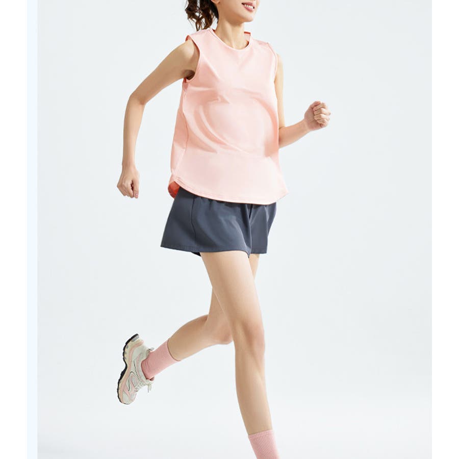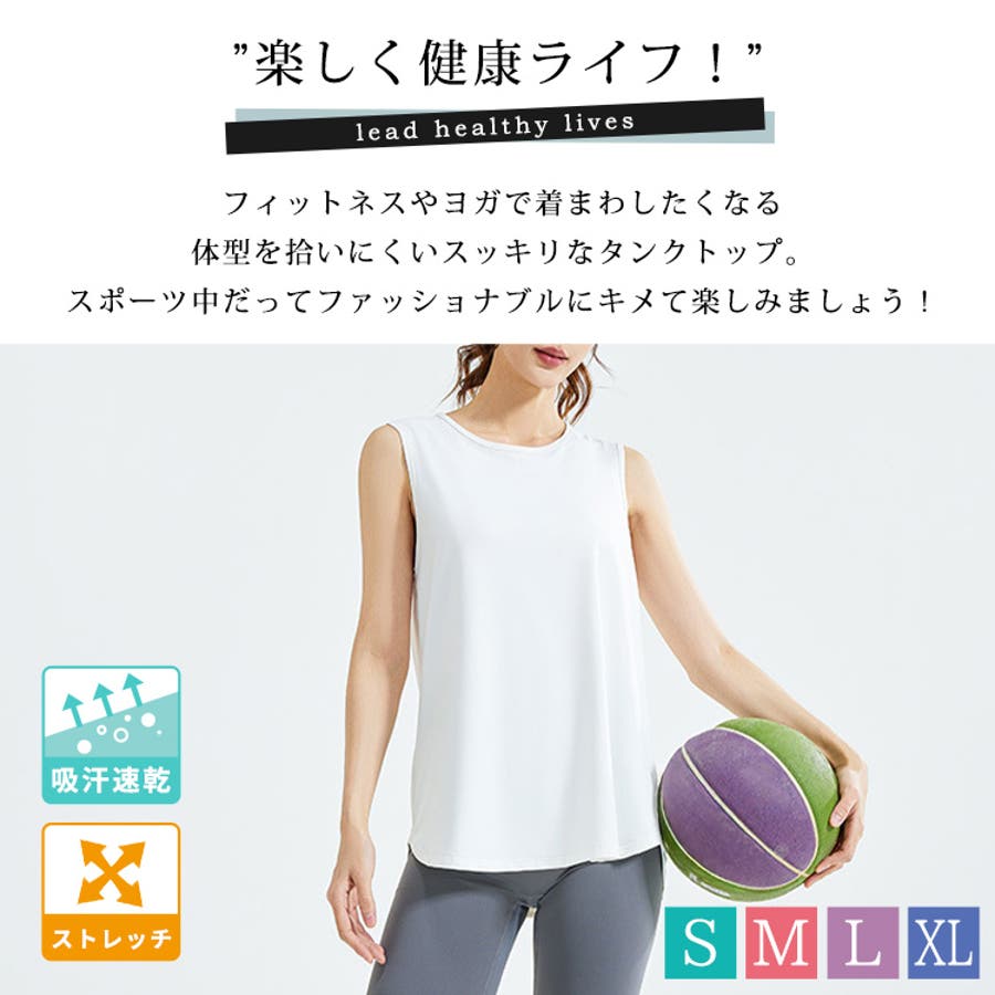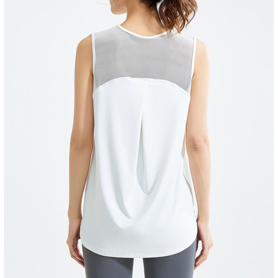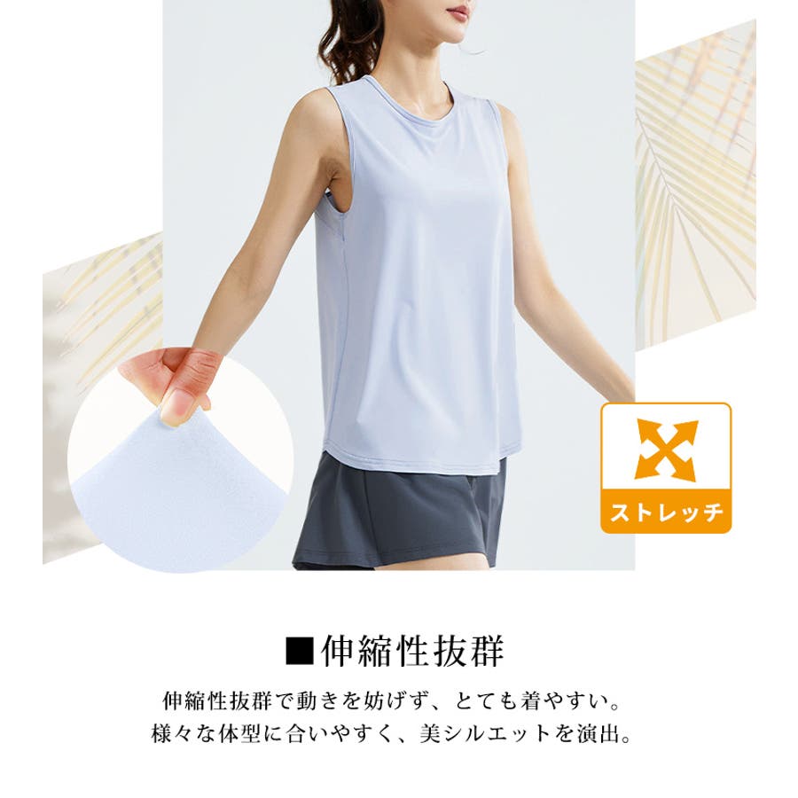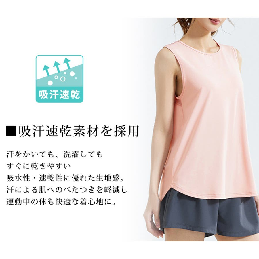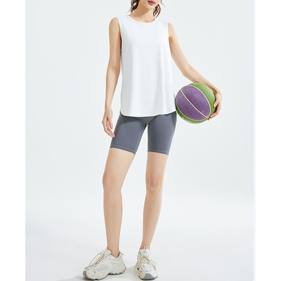 フィットネスやヨガで着まわしたくなる体型を拾いにくいスッキリなタンクトップ。