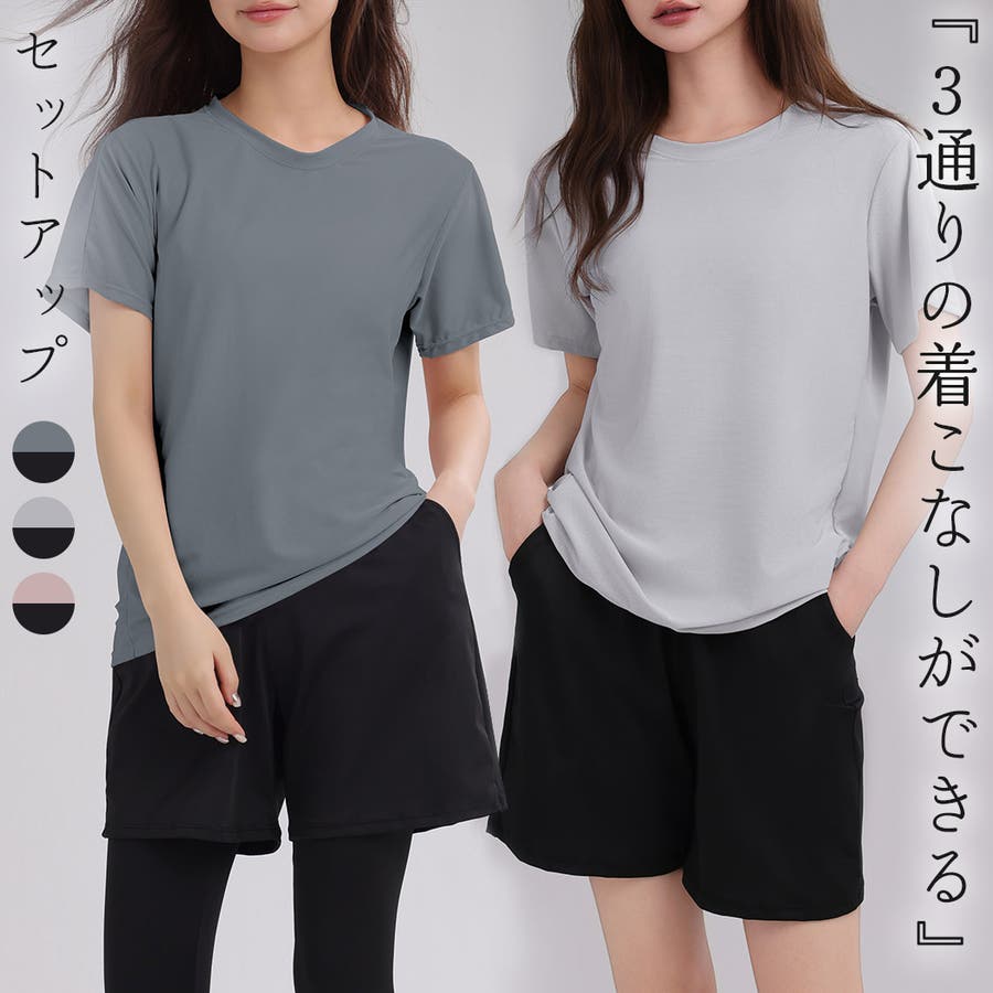 半袖トップス・ハーフパンツ・レギンスの3点セットでとってもお得なセットアップ。