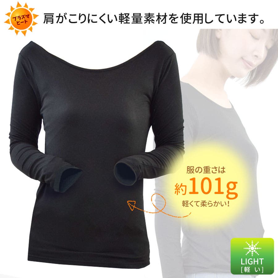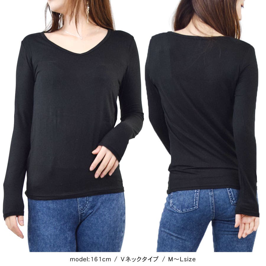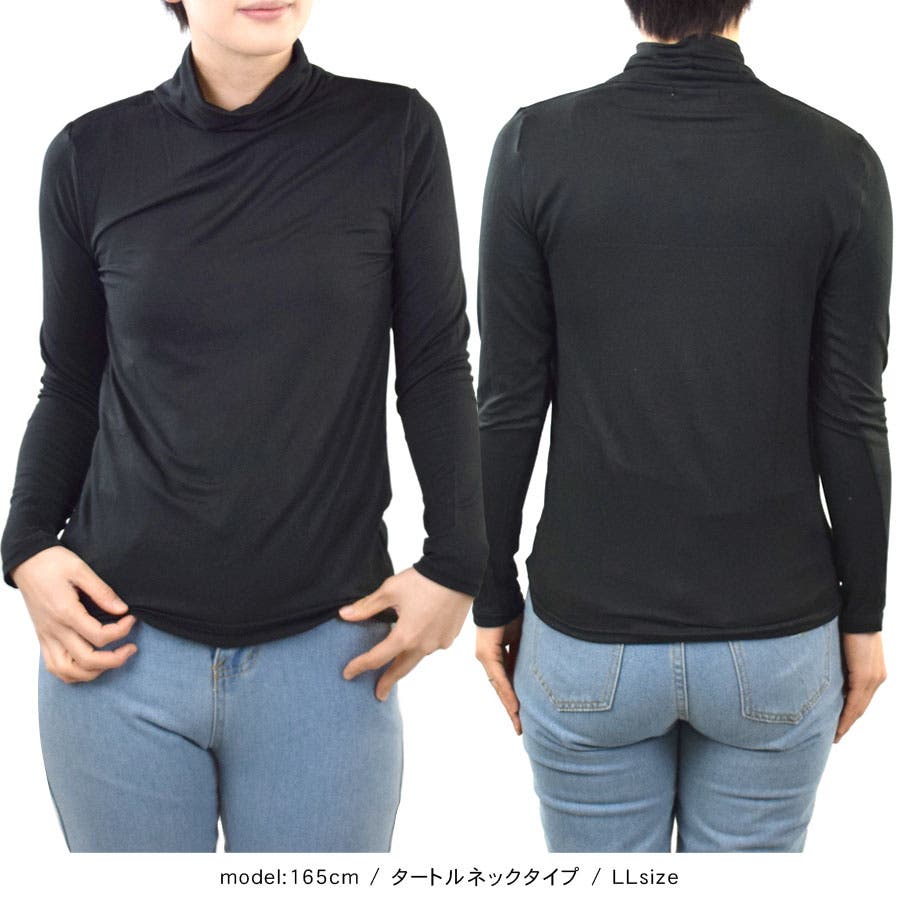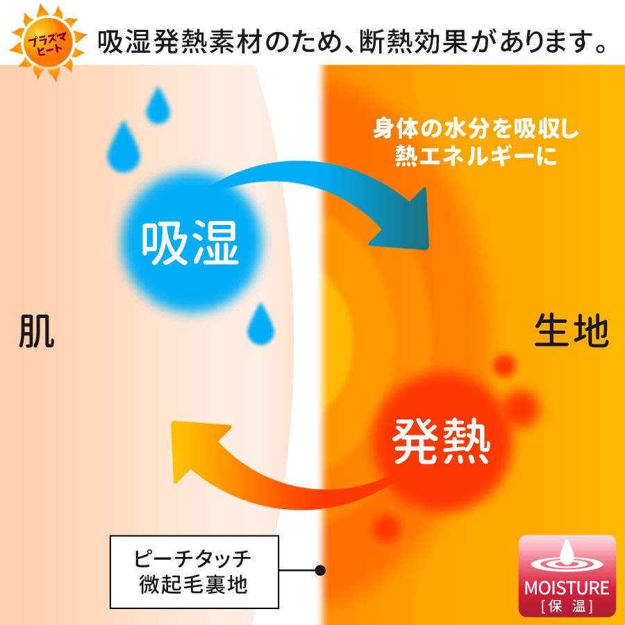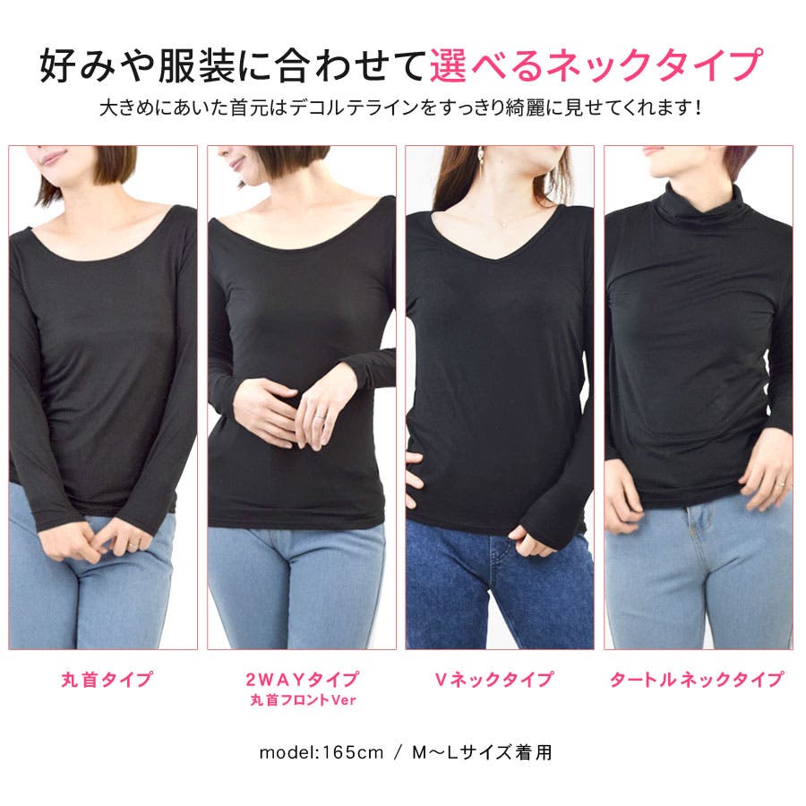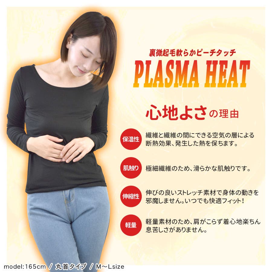 【裏起毛 インナー 長袖 レディース Tシャツ 防寒 トップス 秋冬 プラズマヒート PLASMA HEAT カットソー 丸首 2way V首 Vネック Uネック タートルネック ハイネック 暖か 保温 吸湿 発熱 軽量 断熱 ストレッチ 伸びる ピーチタッチ 柔らか 快適 ヒートインナー ベアバック】