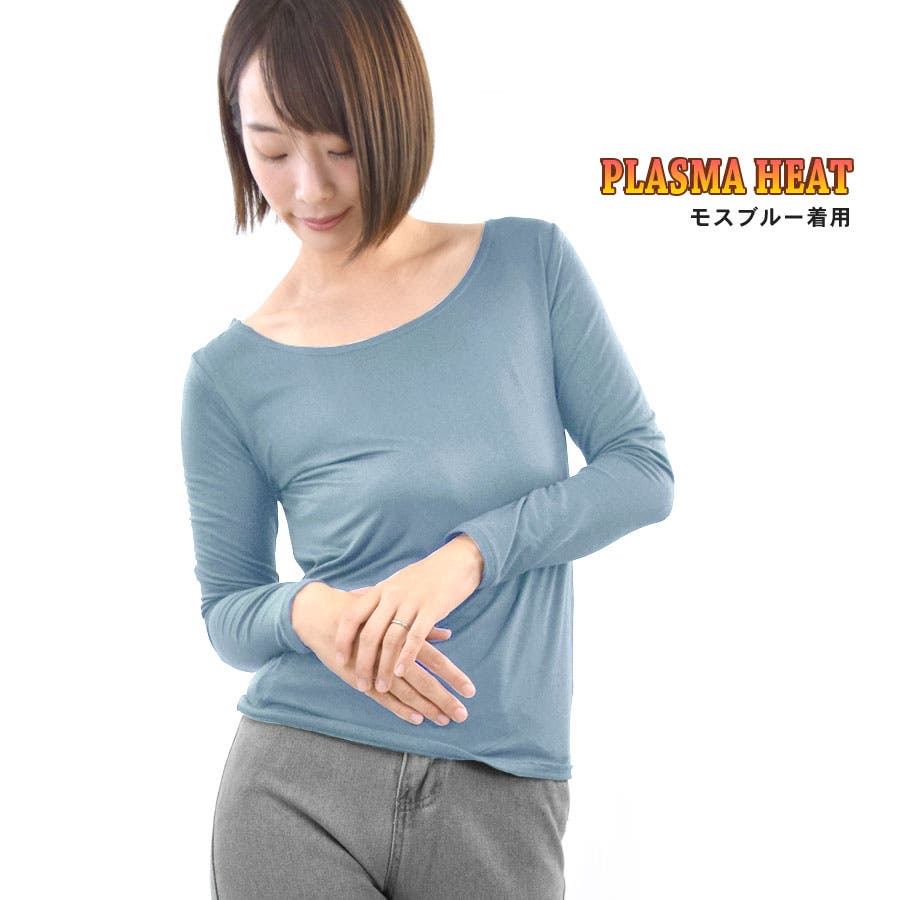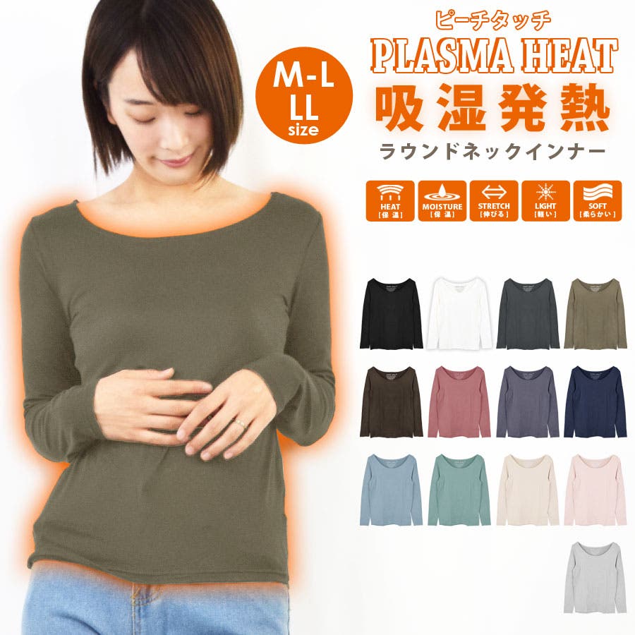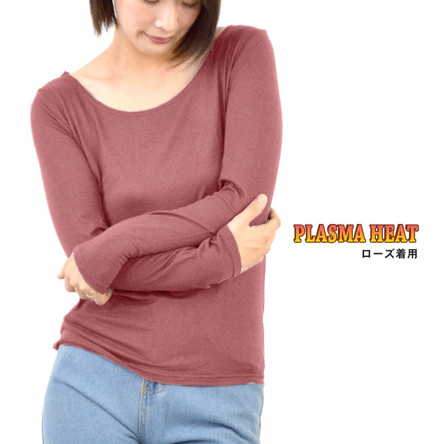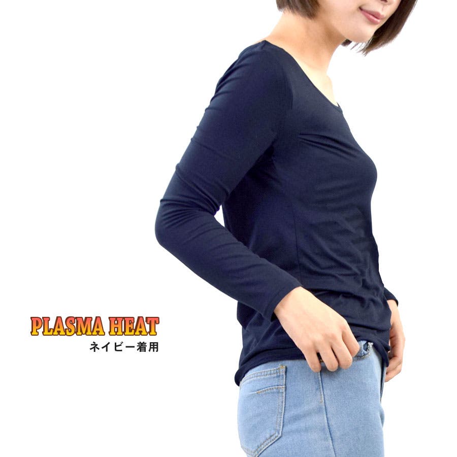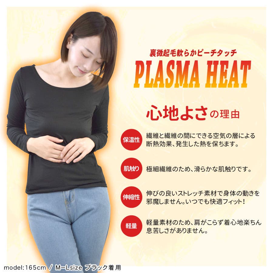 【裏起毛 ヒート インナー 長袖 レディース 肌着 下着 トップス プラズマヒート PLASMA HEAT 防寒 保温 暖か 丸首 ラウンドネック カットソー 薄手 伸縮性 ストレッチ 伸びる ピーチタッチ さらさら 極細繊維 ヒートインナー 発熱 吸湿 軽量】