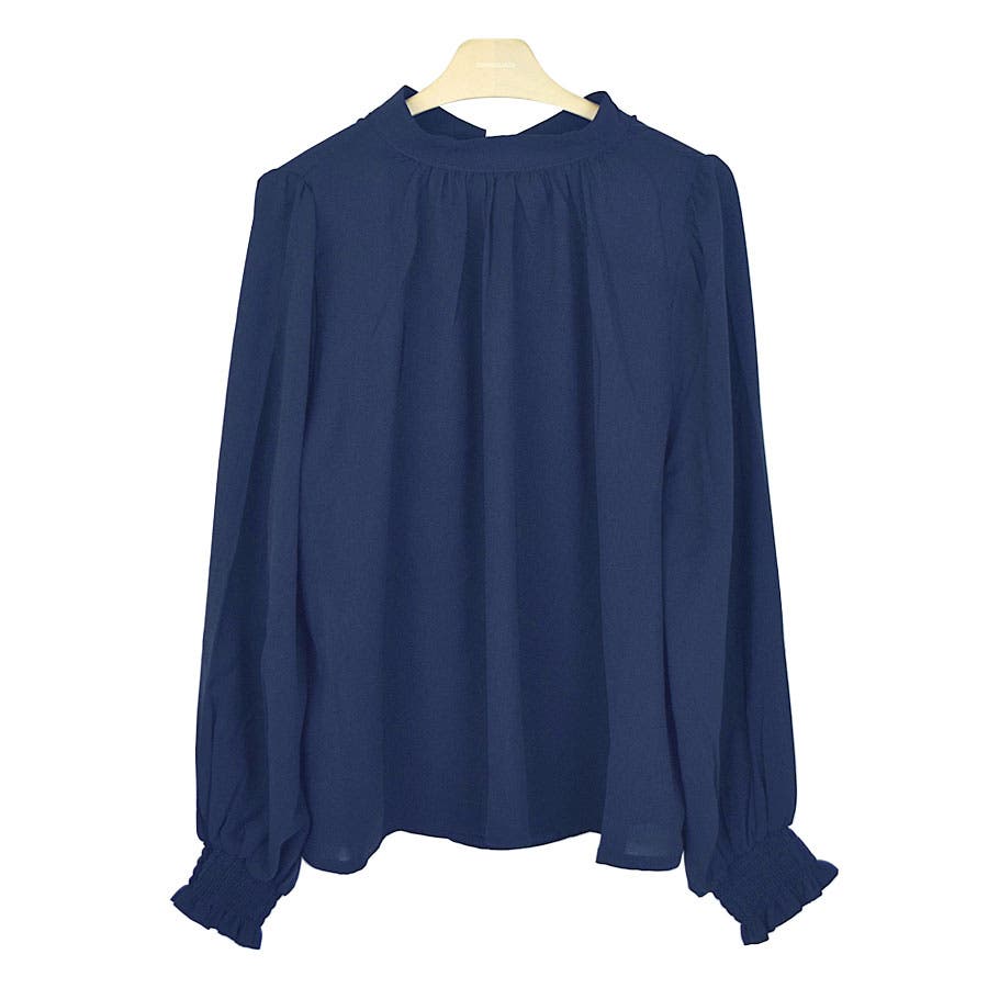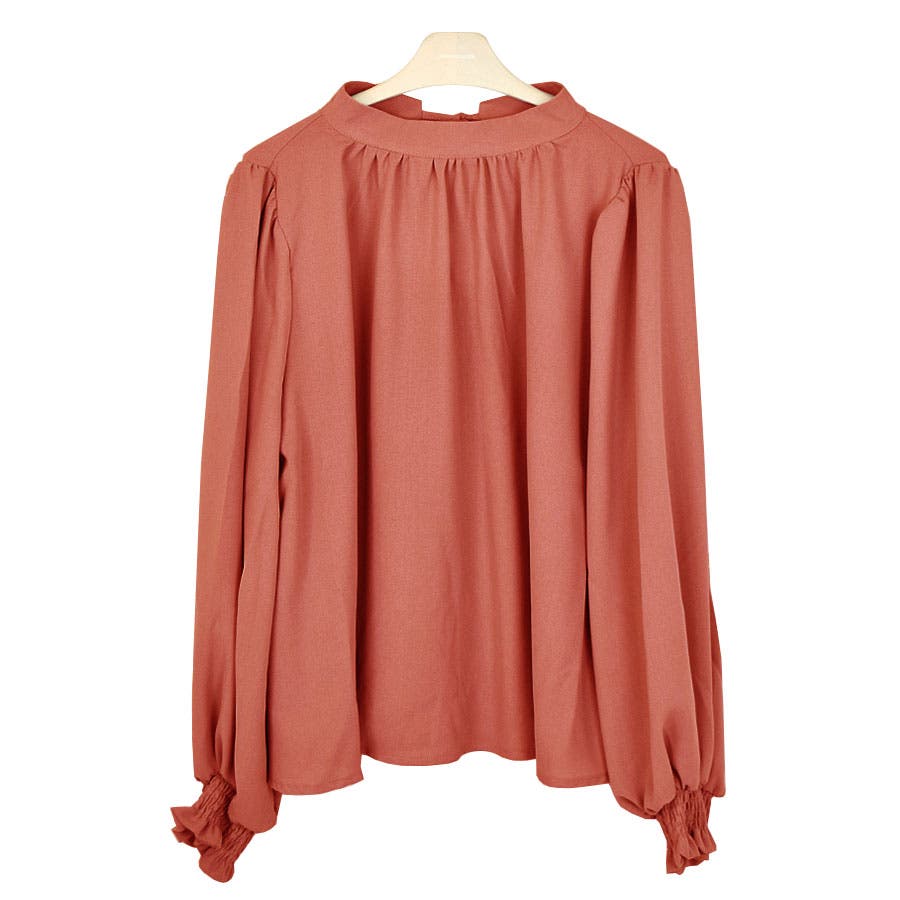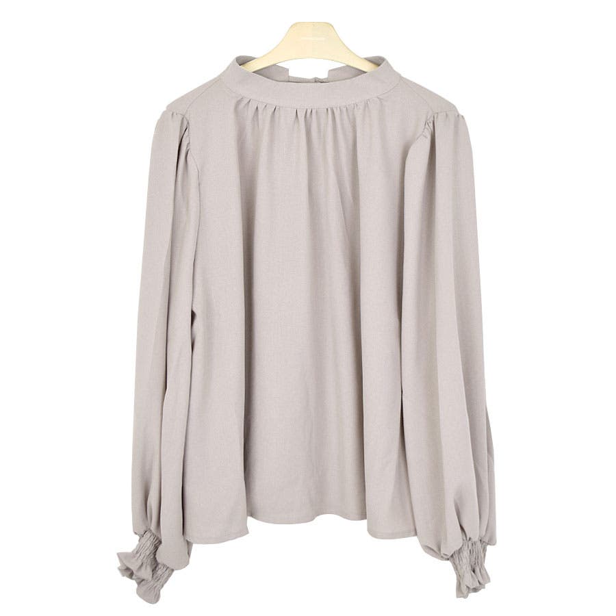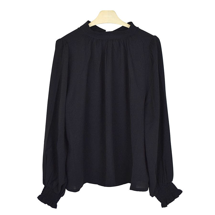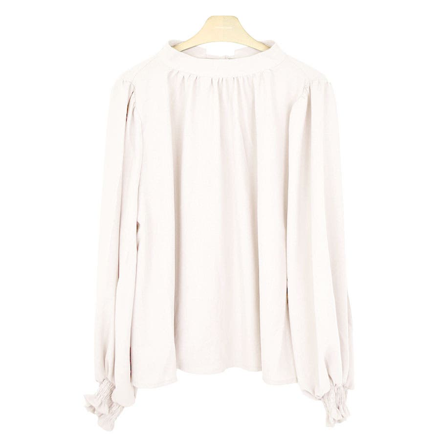 【ブラウス レディース オフィス 長袖 ボリューム袖 フリル バックリボン ハイネック 無地 おしゃれ きれいめ 大人 可愛い フェミニン プルオーバー カットソー バルーン袖 結婚式 入学式 卒業式 仕事着 ビジネス フォーマル オケージョン】