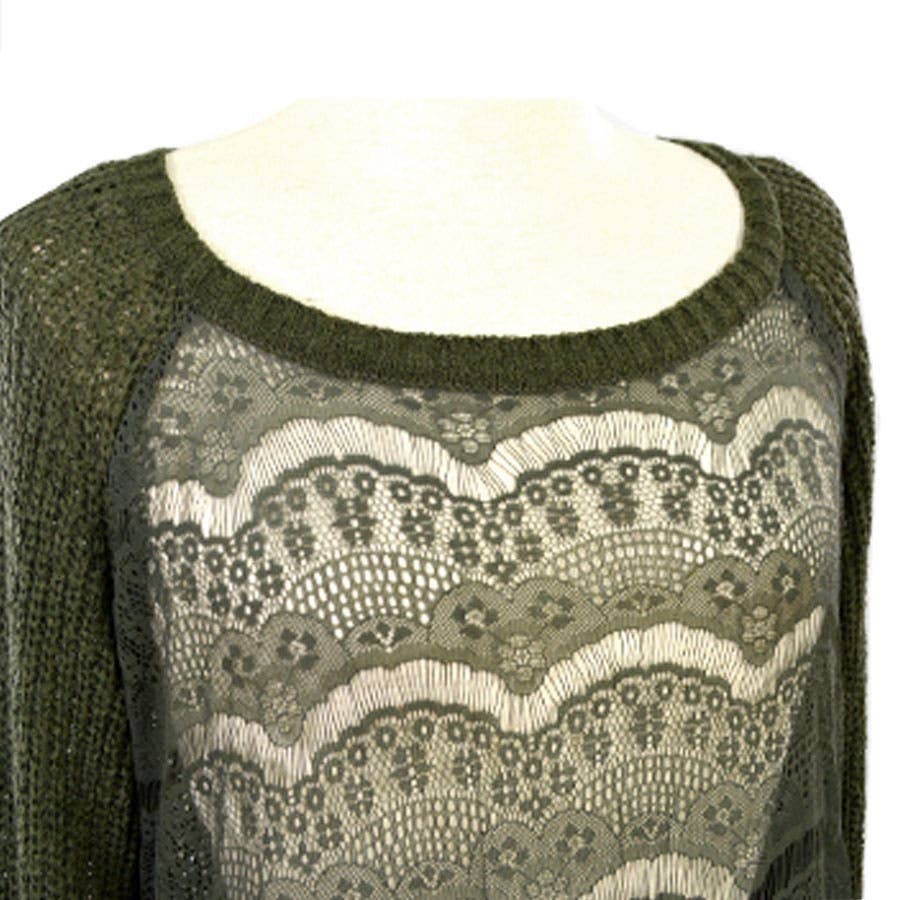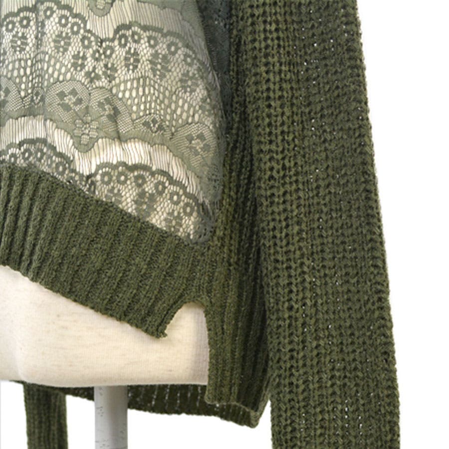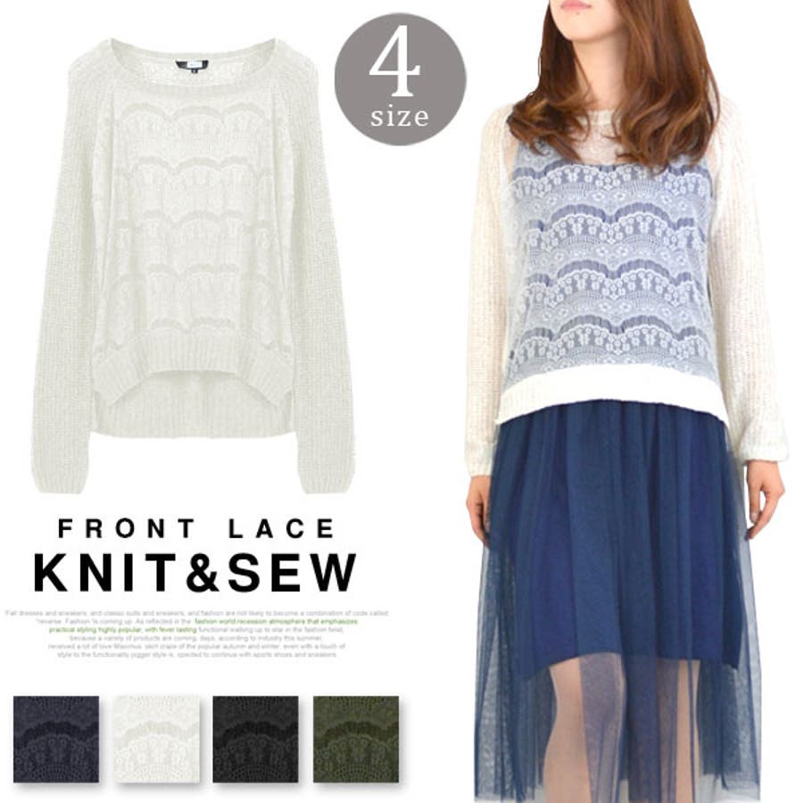 【ニット ニットソー レディーストップス フロントレース 長袖 サマーニット サイドスリット 前後丈違い 薄手】