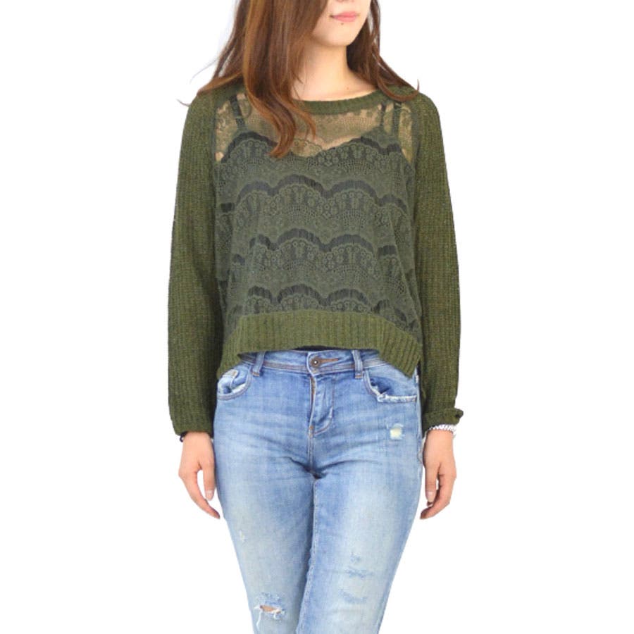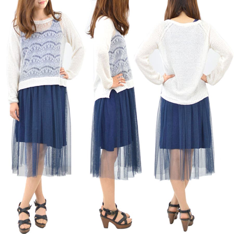 レイヤードを楽しめる♪薄手透かし編みニットソー☆