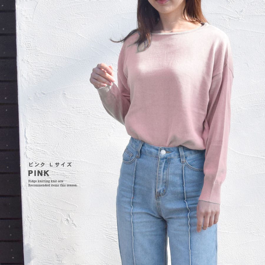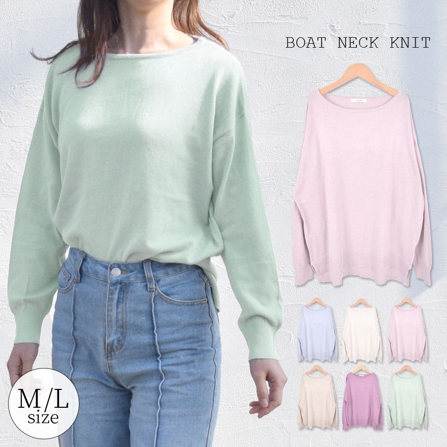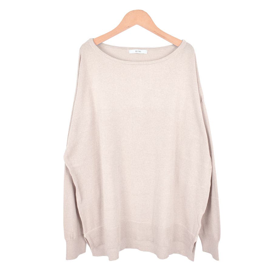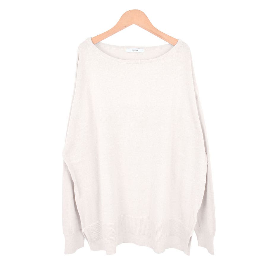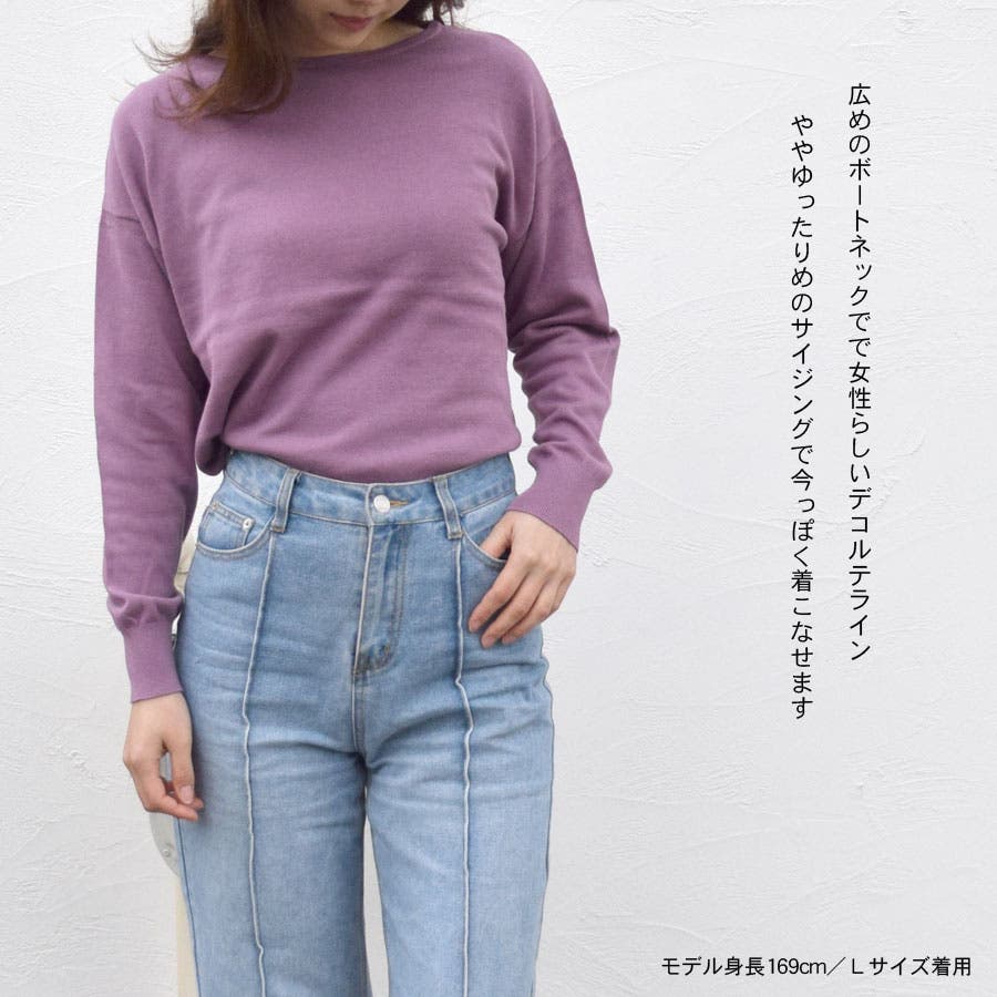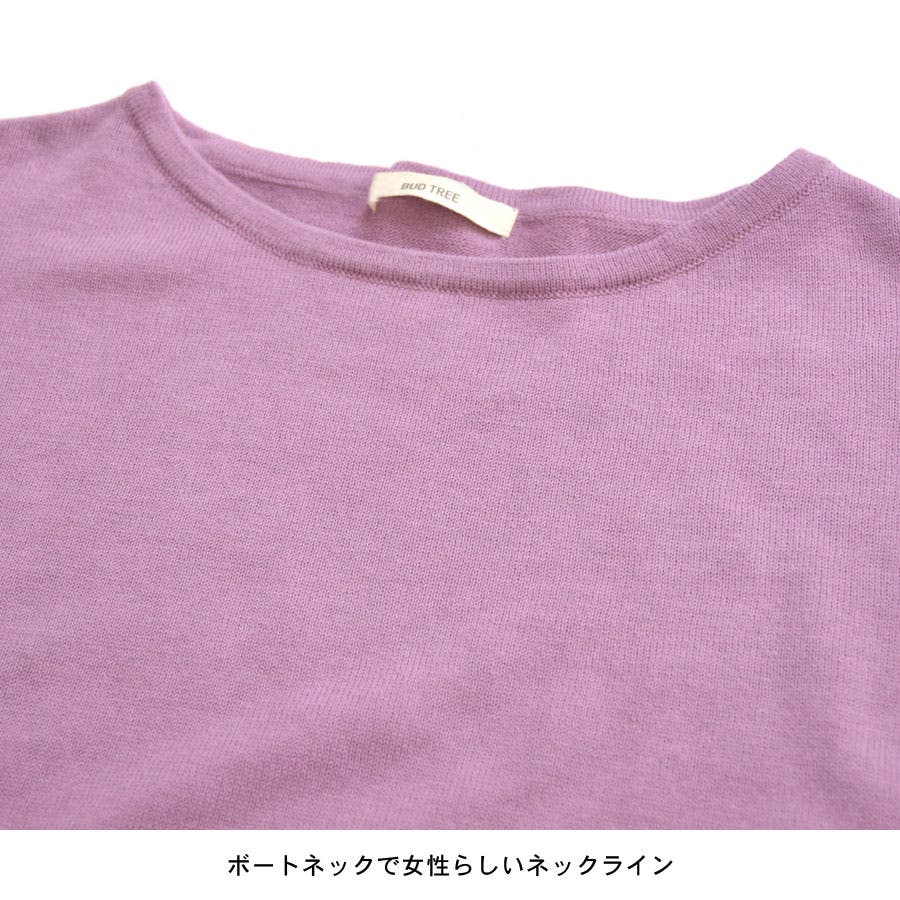 【ニット セーター 綿100% ボートネック ニットソー レディース トップス 長袖 コットン チクチクしない さらさら スリット入り ゆったり ルーズ シンプル きれいめ 洗えるニット ウォッシャブル】