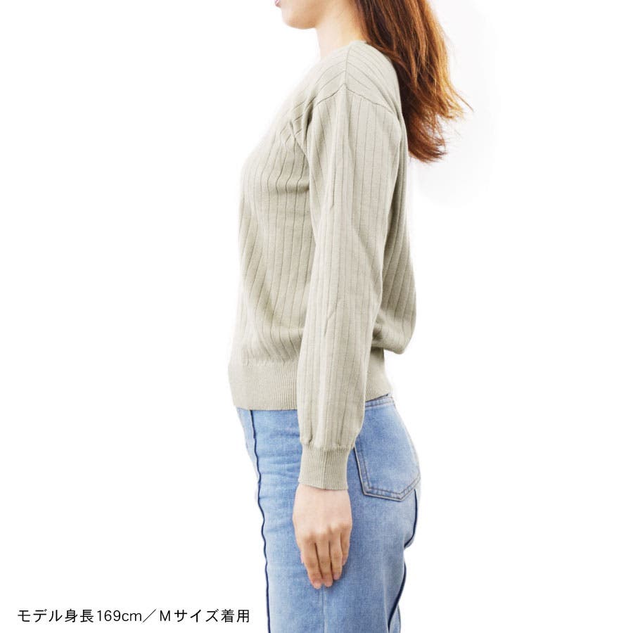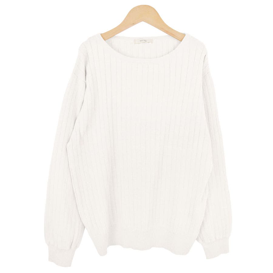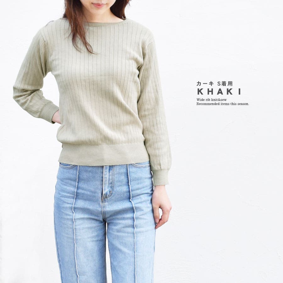 【ワイドリブ ニット レディース トップス セーター 長袖 薄手 クルーネック ニットソー シンプル 無地 カジュアル きれいめ 上品 着回し ナチュラル ハイゲージ ゆったり 大きいサイズ 小さいサイズ 太リブ かわいい】