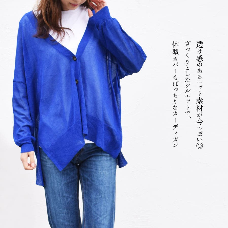【カーディガン Vネック ニット レディース トップス ワイド ざっくり ゆったり 透け感 シアー ニットカーディガン ルーズ 薄手 長袖 アウター 羽織り 上着 サイドスリット ボタン 体型カバー シンプル 無地 カジュアル】