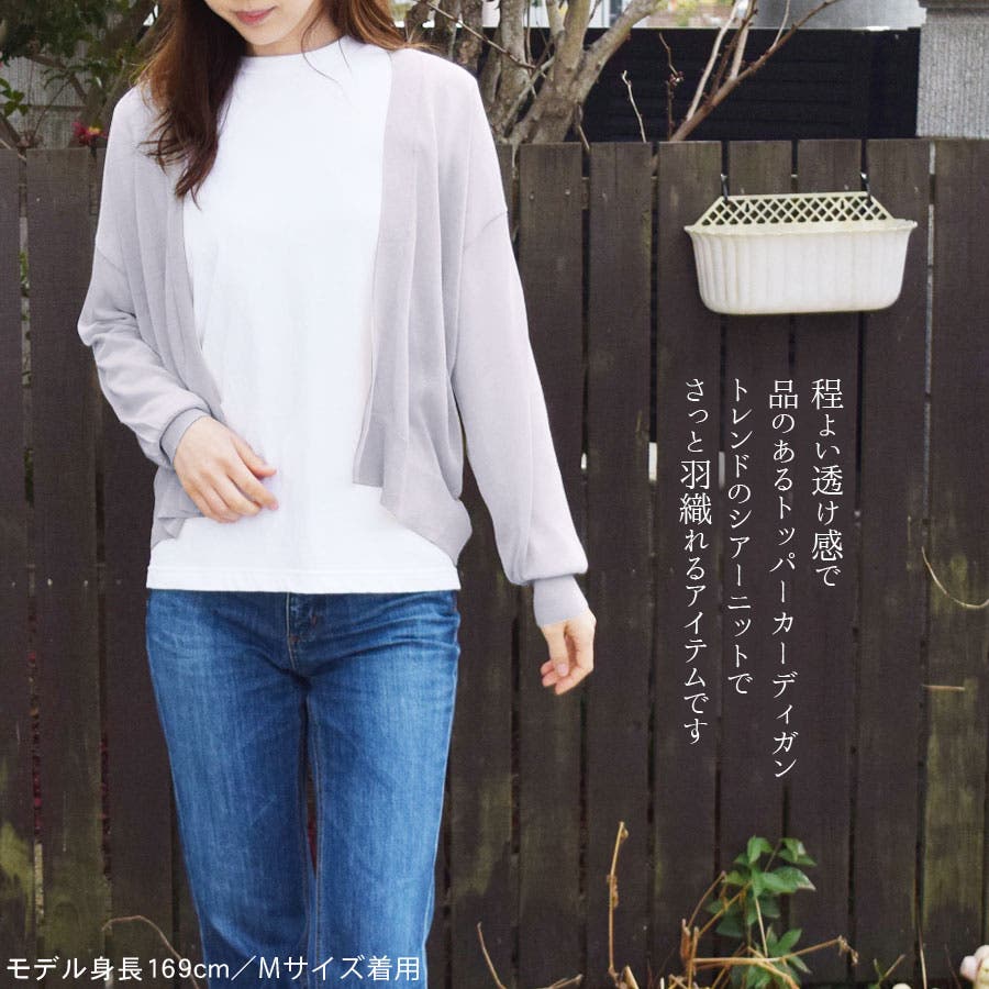 【カーディガン ニット レディース トップス トッパーカーディガン 透け感 シアー 薄手 長袖 トッパーカーデ 前開き 羽織り 上着 シンプル 無地 ガウン ショート丈 ミドル丈 カジュアル サマーニット】