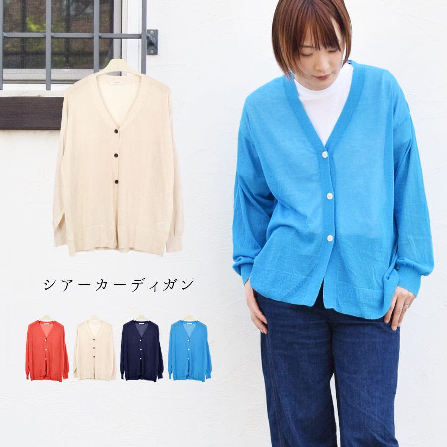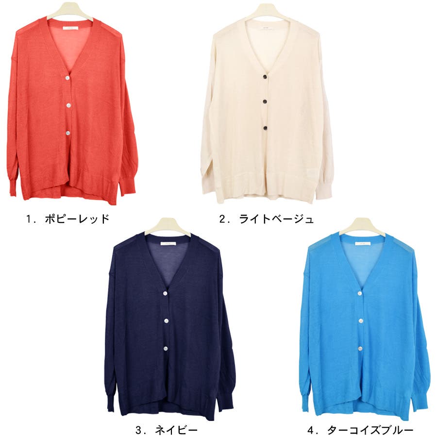 【カーディガン ニットカーディガン レディース トップス シアー 透け感 Vネック 上着 羽織り ワイド ゆったり 長袖 薄手 シンプル 無地 サマーニット さらさら チクチクしない 冷房対策 紫外線対策 差し色 着回し 大人 お洒落】