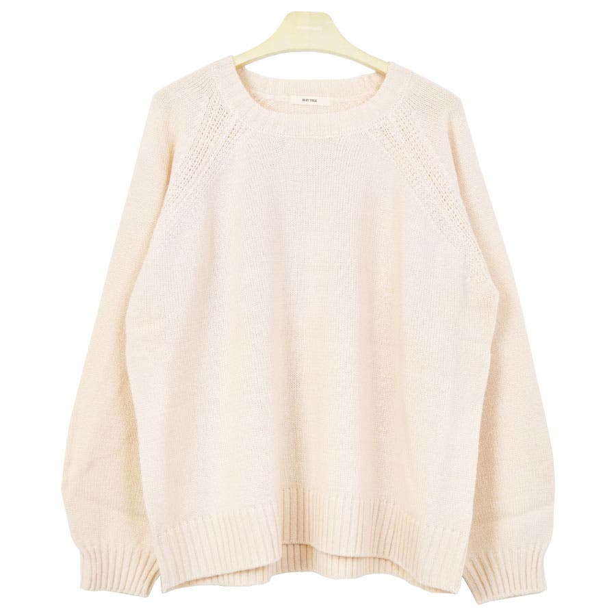 【ニット セーター レディース トップス ざっくり ローゲージ ウール混 シンプル 無地 長袖 ラグラン ラグランニット 丸首 クルーネック カジュアル ボリューム袖 ワイド ゆったり プルオーバー たっぷり 可愛い 着回し 大きめ】