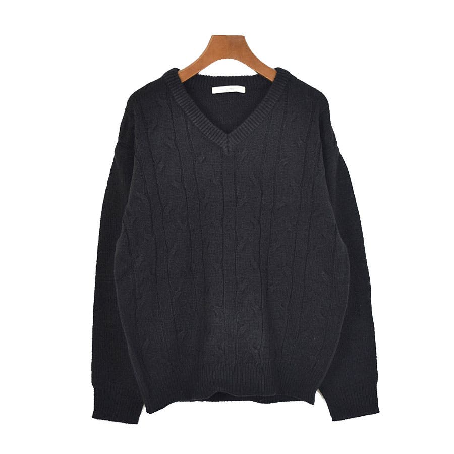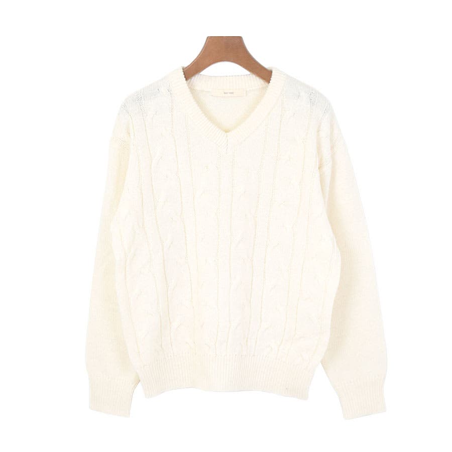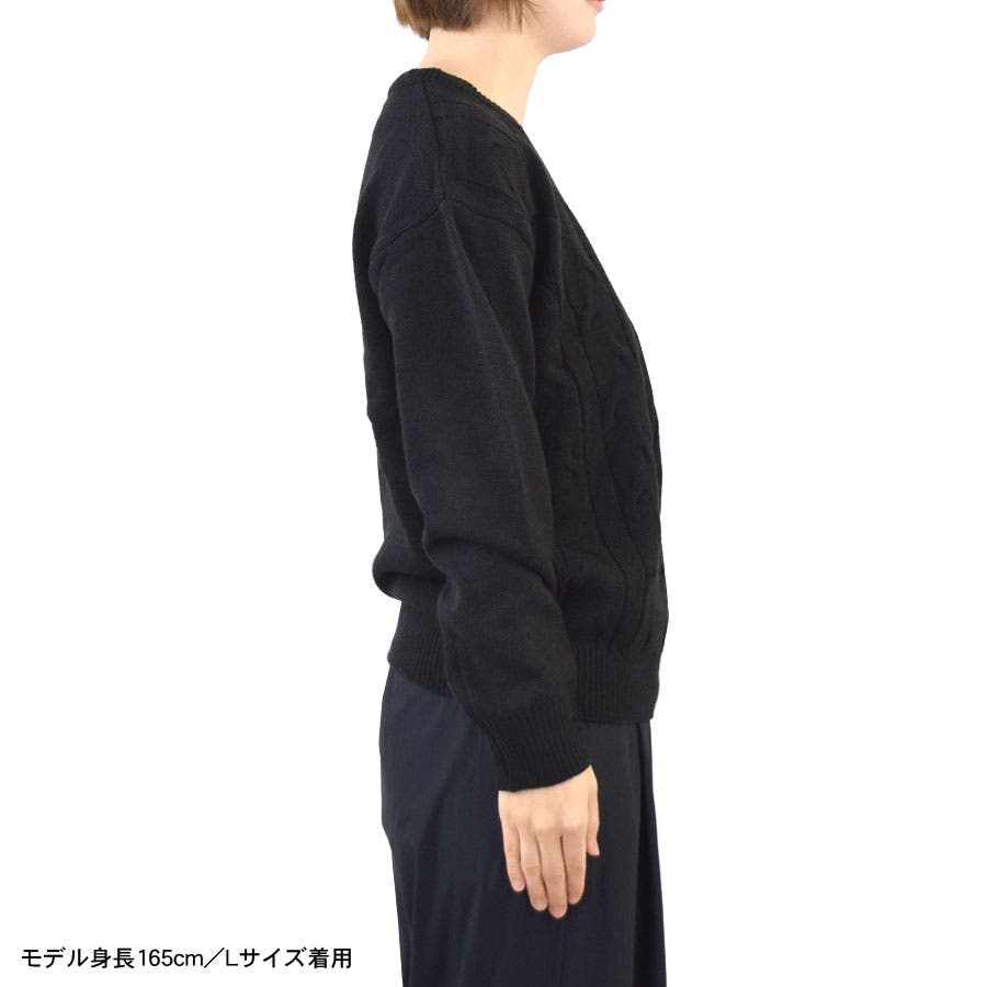 【ニット レディース ケーブル編み 長袖 秋 冬 Vネック トップス セーター ウール混 ケーブルニット ざっくり きれいめ おしゃれ かわいい カジュアル オフィス シンプル 白 ホワイト 黒 ブラック ショート丈 ボリューム 立体的】