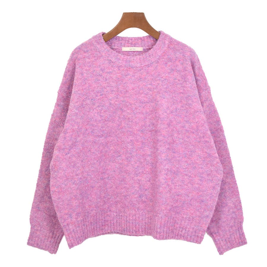 【ニット セーター レディース 秋冬 かわいい ミックスカラー プルオーバー ブークレニット トップス 長袖 クルーネック 起毛 厚手 ボリューム ゆったり ワイド MIXカラー カラーニット 体型カバー カラフル ブルー イエロー ピンク ベージュ もこもこ マーブル 模様 韓国風 韓国ファッション 可愛い お洒落】