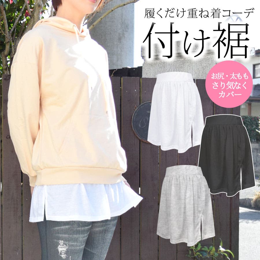 【付け裾 つけ裾 大きいサイズ レイヤード風 重ね着風 スリット入り ウエストゴム 白 黒 オーバーサイズ 薄手 無地 こなれ感 履くだけ レディース シンプル カジュアル フレア】