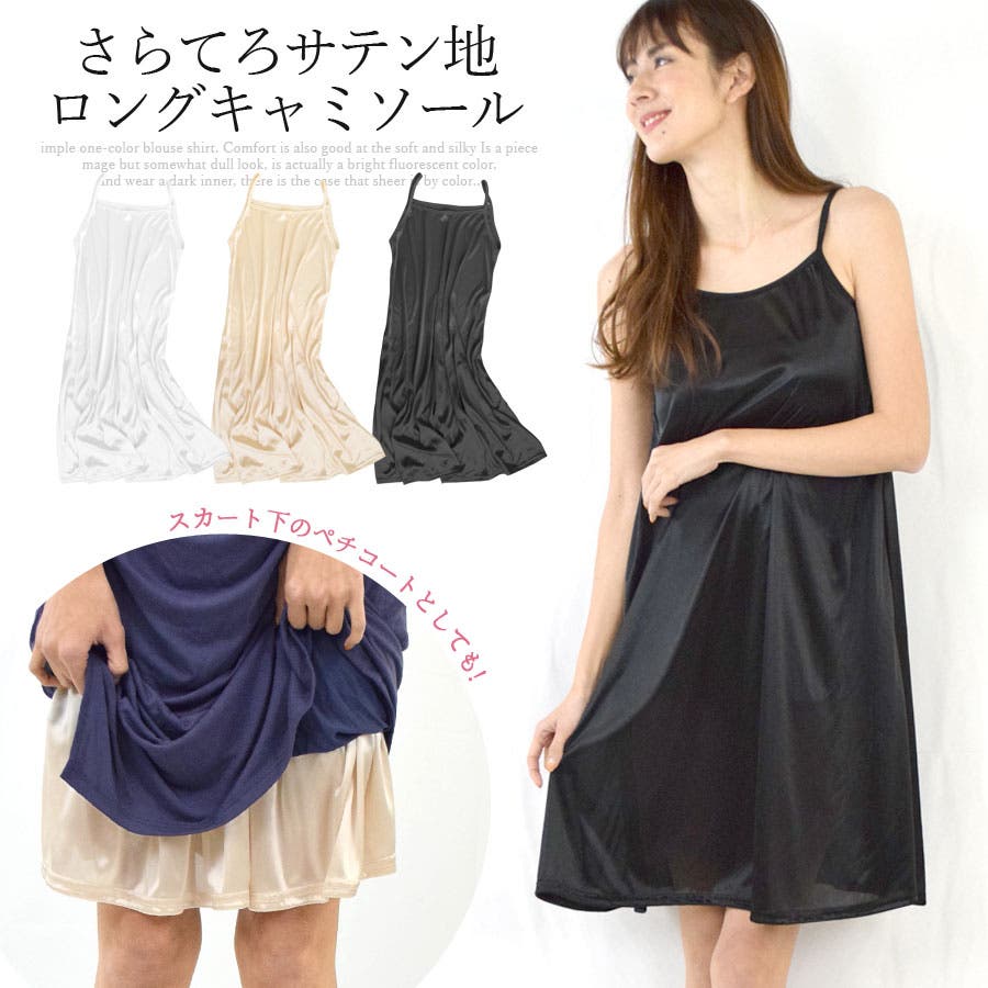 【キャミソール サテン ロング セクシー ロングキャミソール インナー ペチコート スカート 光沢 Aライン 薄手 さらてろ なめらか 大きいサイズ】