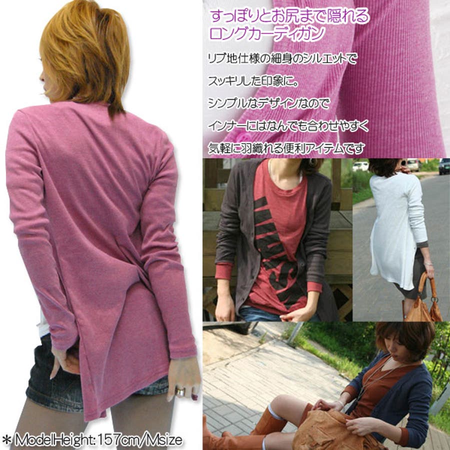 お尻まで隠れるロング丈とVネック、それとストレッチが効いていて体にフィットするので細見せ効果はバッチリ★1枚持っておくと着回しがかなり楽になります♪ 14カラー&M・Lサイズあるので色チ買いもオススメ!!