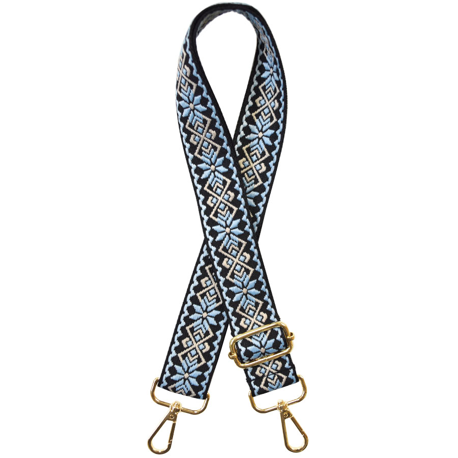 【15.チロリアンブラック青】ショルダーストラップ バッグ用 太め