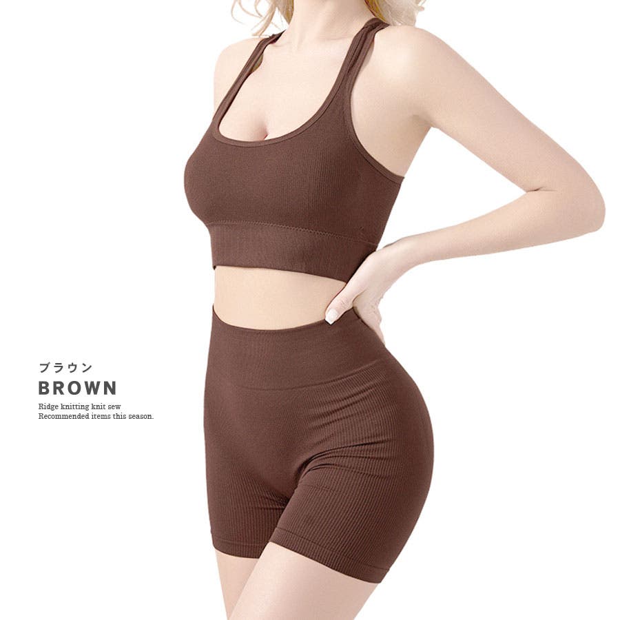 【スポーツブラ レギンス 上下セット フィットネスウェア 2点セット バッククロス ブラ スパッツ インナー ナイトブラ セットアップ 揺れない リブ ハイウエスト 2分丈 ノンワイヤー 伸縮性 ストレッチ ヨガ ジム スポーツ 運動】