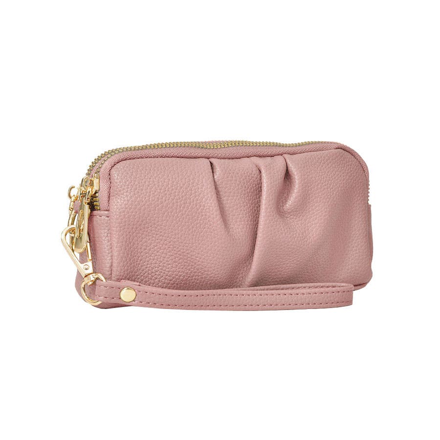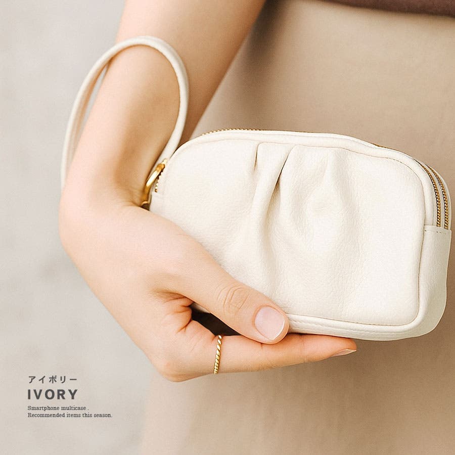 【マルチケース スマホポーチ 財布 通帳 レザー調 横型 マルチポーチ 長財布 レディース 大容量 ダブルファスナー ラウンドファスナー かわいい おしゃれ ストラップ 内ポケット ギャザー ポーチ メイクポーチ 化粧ポーチ スマホケース クラッチバッグ 高級感 高見え ギフト プレゼント】