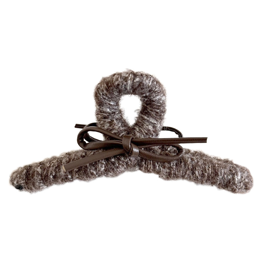 【リボン付き バンスクリップ ヘアクリップ ニット素材 レザー調 リボン くるりん 大きめ レディース ヘアアクセサリー りぼん BIG 髪留め 髪飾り まとめ髪 ハーフアップ お洒落 ミニリボン 可愛い 韓国風 大人 MIX編み コンビ カラー ガーリー フェミニン】
