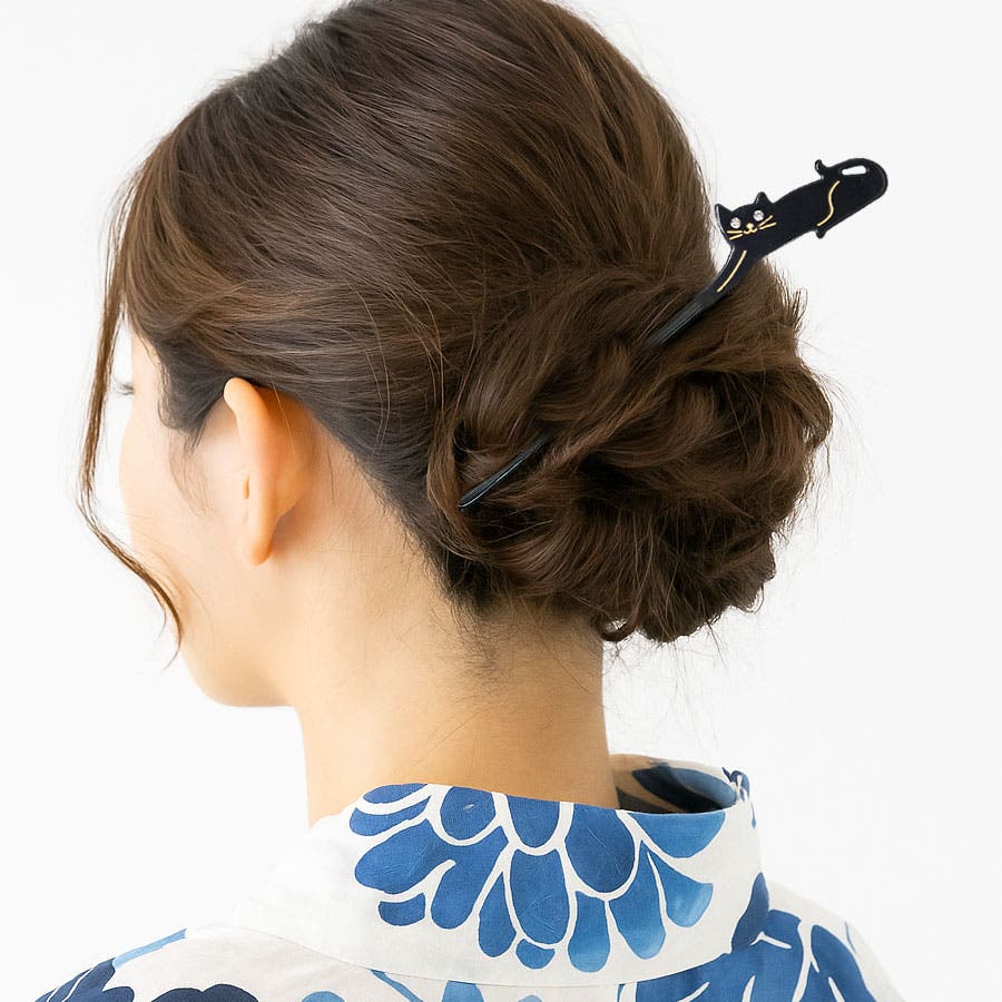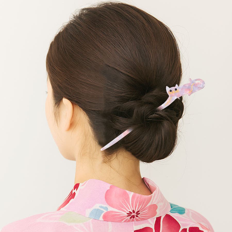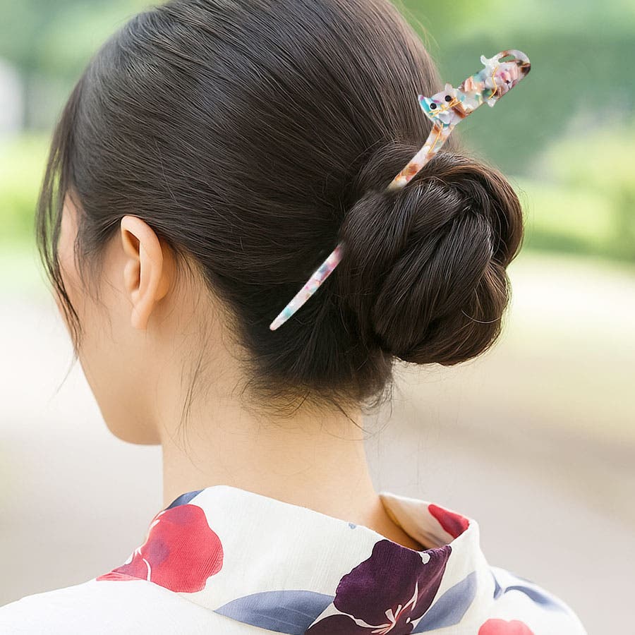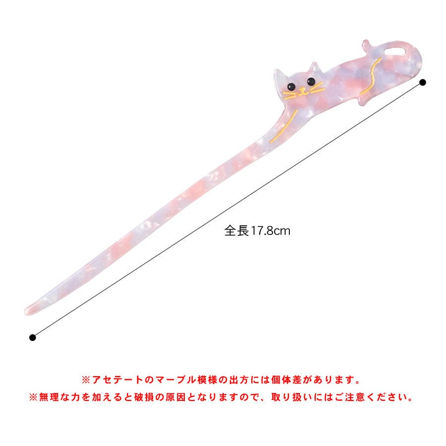 【猫 かんざし 一本 一本挿し 普段使い ネコ ねこ マーブル模様 一本足 まとめ髪 お団子 和装 着物 浴衣 レディース ヘアアクセサリー ユニーク かわいい おしゃれ べっ甲風 挿すだけ スティックかんざし アニマル 動物】