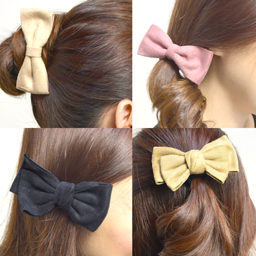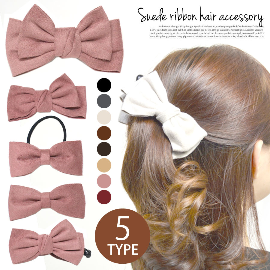 【選べる5タイプ しっとり スエード調 ベロア風 生地 リボン ヘアクリップ バナナクリップ ヘアゴム レディース ヘアアクセサリー スエード ベロア ベルベット レザー】