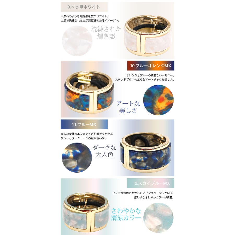 | カラー | 1.べっ甲ブラウン / 2.べっ甲MIX / 3.べっ甲ベージュ / 4.べっ甲クリーム / 5.グレーMIX / 6.ネイビーMIX / 7.ピンクMIX / 8.マルチカラーMIX / 9.べっ甲ホワイト / 10.ブルーオレンジMIX / 11.ブルーMIX / 13.ピンクベージュMIX / 12.スカイブルーMIX / 14.ブラウンMIX / 15.べっ甲ピンク / 16.ブルーイエローMIX |