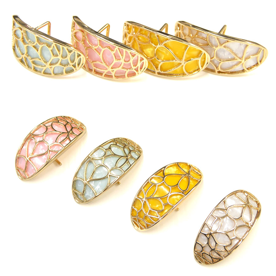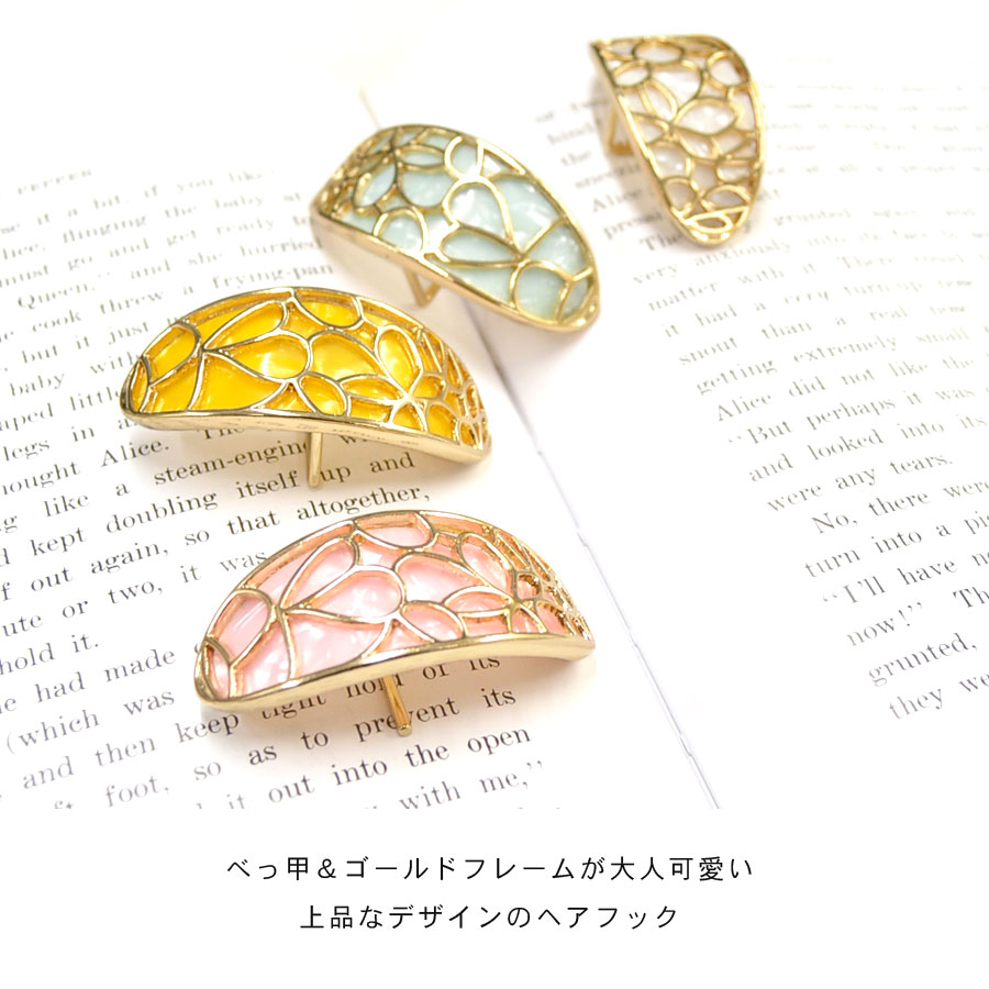 オーバル型のアセテートゴールドフレームヘアフック。