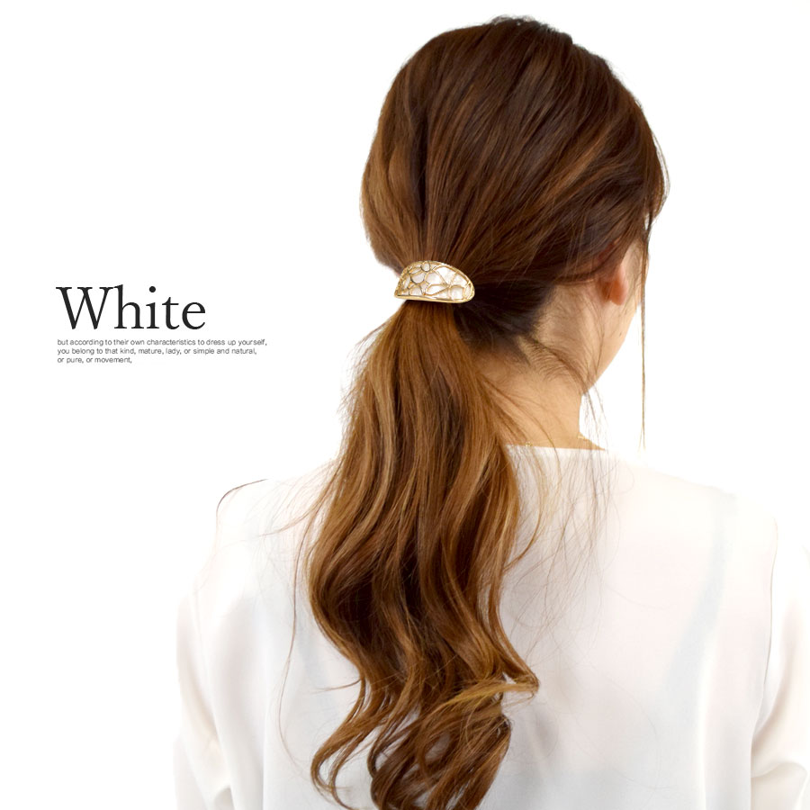 結び髪に付けるだけで大人可愛い印象に。