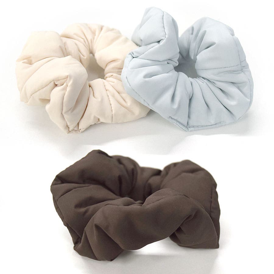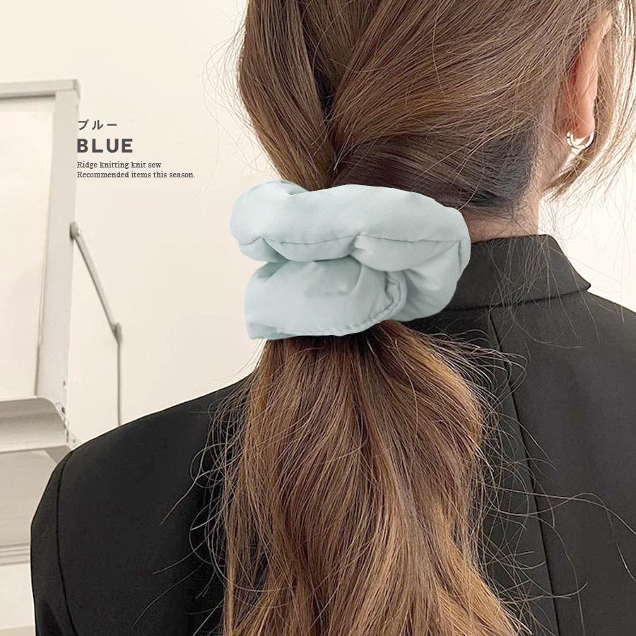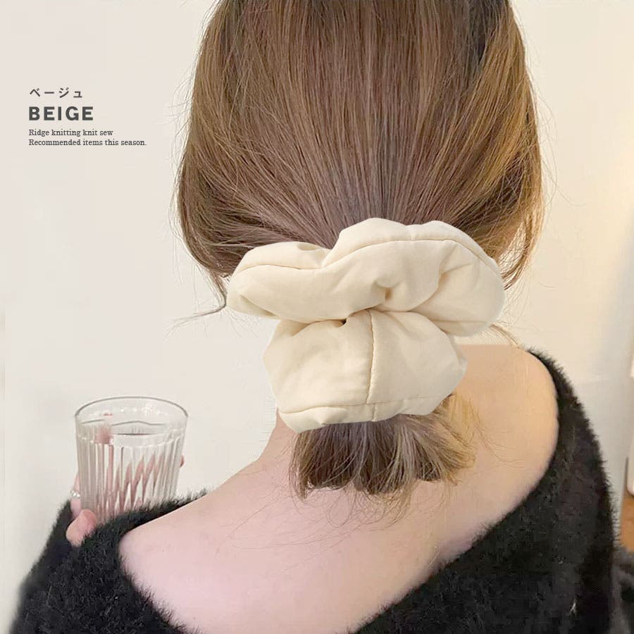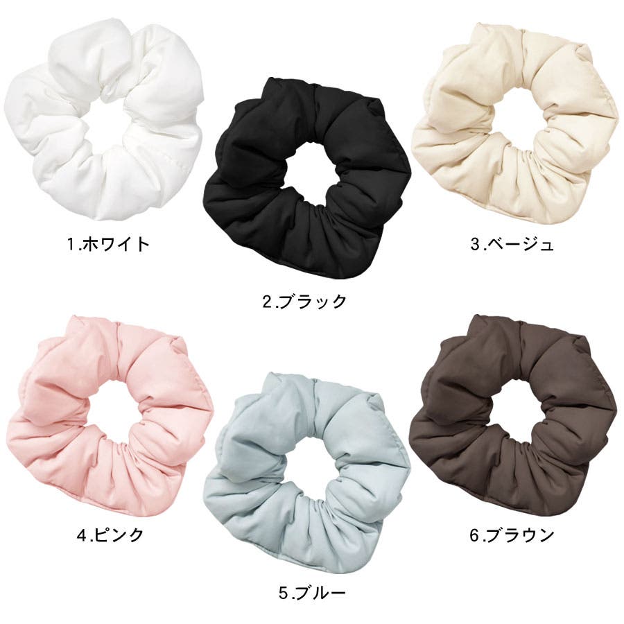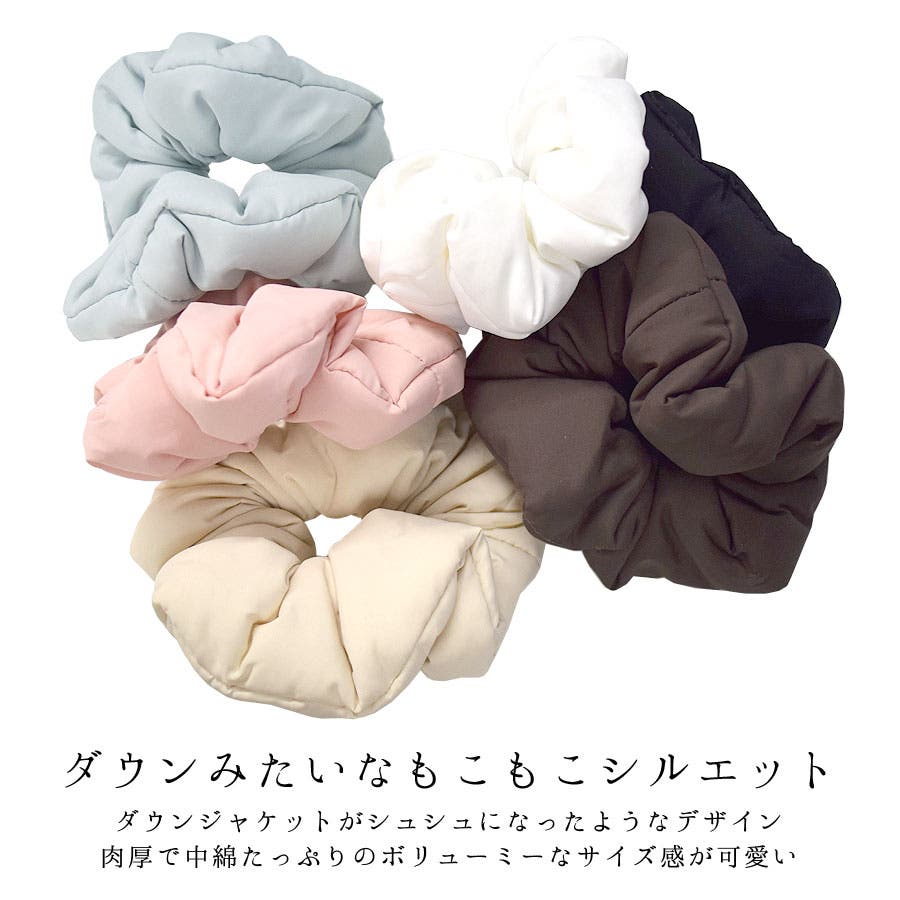 【シュシュ ダウン風 大きめ ボリューム BIG ダウン素材 もこもこ 肉厚 レディース ヘアアクセサリー 中綿 大きい 大ぶり ヘアゴム ヘアポニー まとめ髪 秋冬 大人 アウトドア ダウンジャケット風 シンプル 無地】