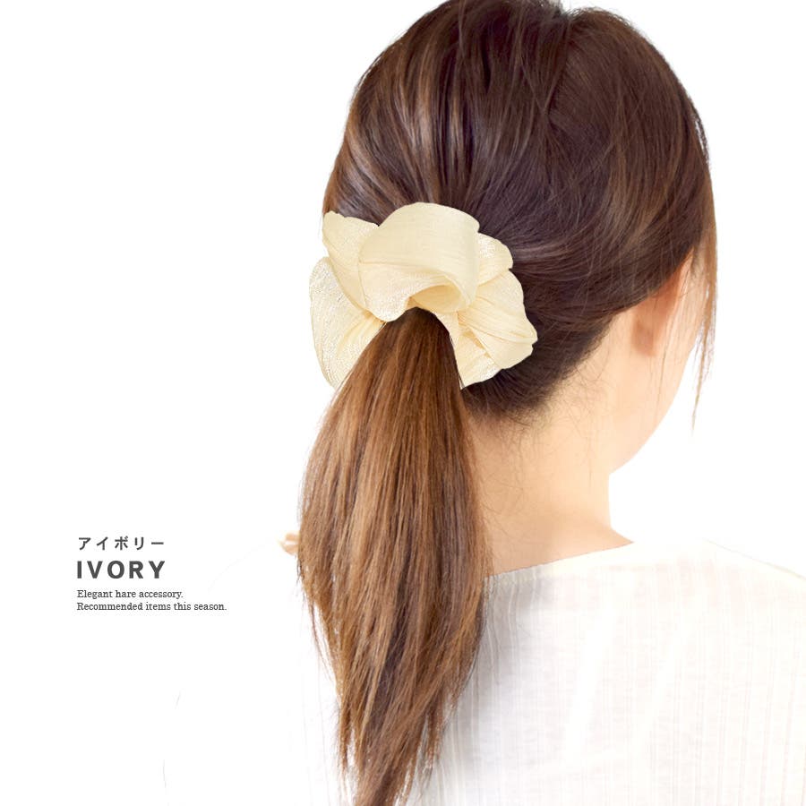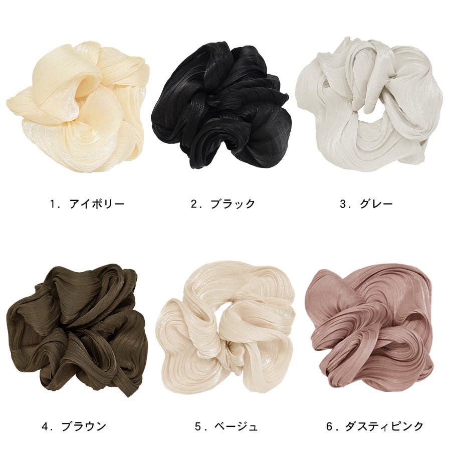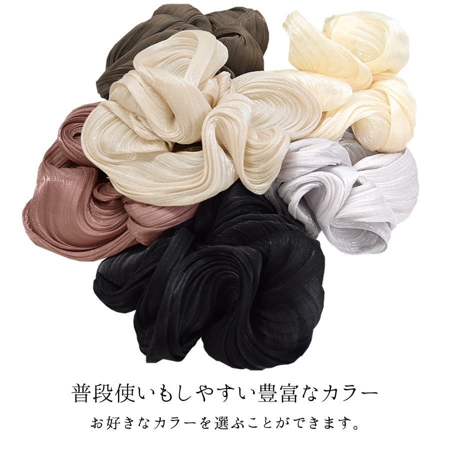 【シュシュ ヘアゴム レディース ヘアアクセサリー アクセサリー 光沢 プリーツ サテン きらきら ボリューム ふわふわ 大きめ 大きいサイズ ポニー 髪留め 髪飾り 無地 大人 エレガント 上品 きれいめ まとめ髪 ヘアアレンジ 可愛い ポニーテール おだんご オフィス OL】
