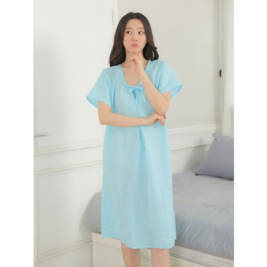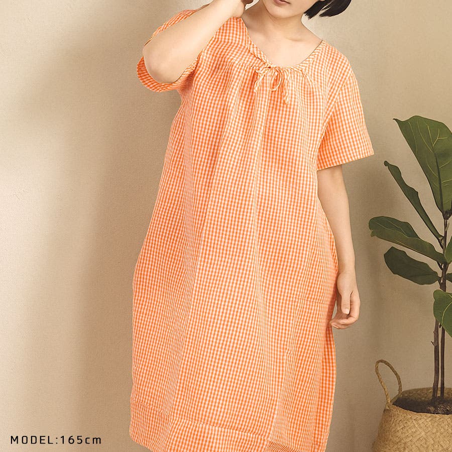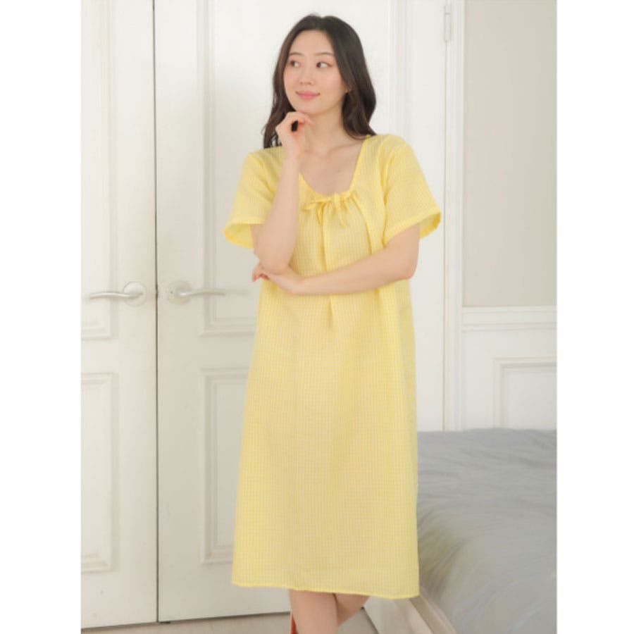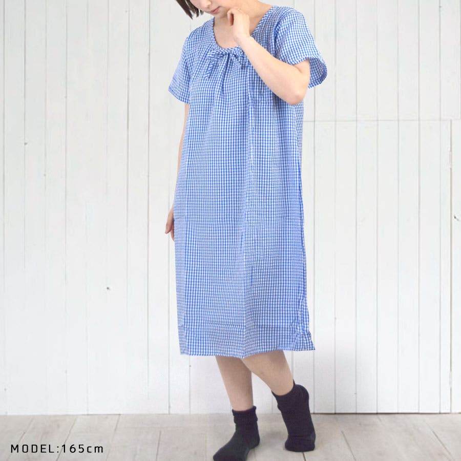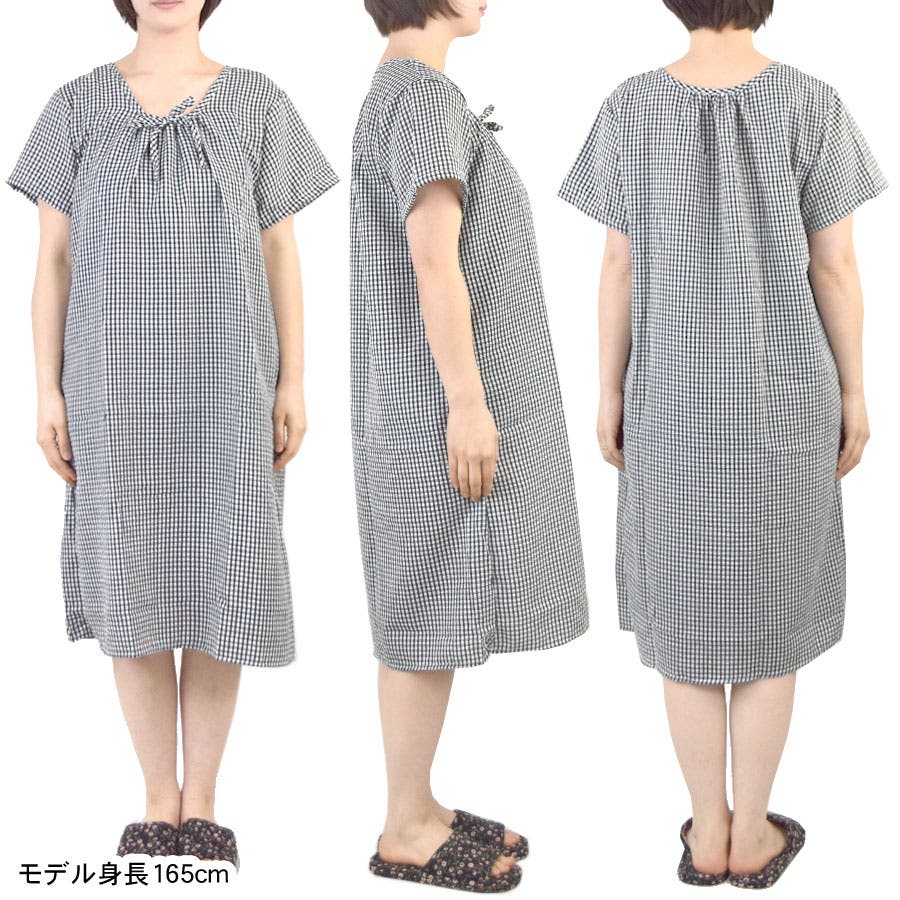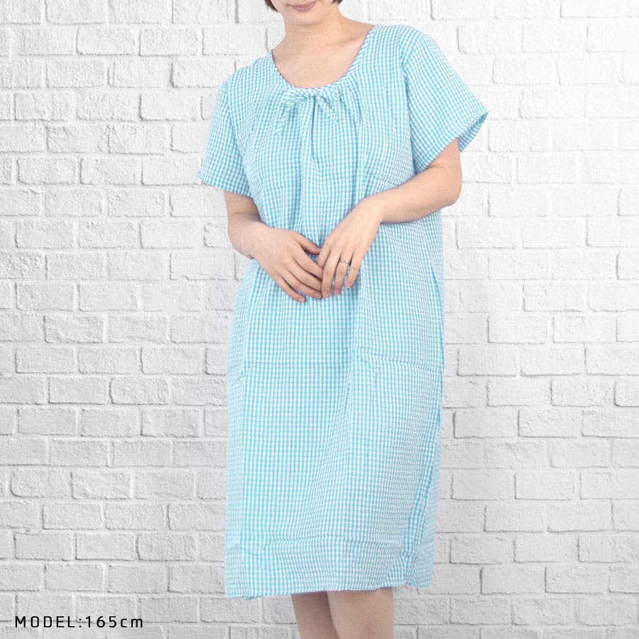 【パジャマ ルームウェア 夏 レディース ワンピース 半袖 部屋着 軽い 涼しい 涼し気 さらさら ふんわり Aライン ゆったり 夏用 夏向け マタニティ 女性用 リボン シボ 凹凸生地 軽量 ギンガムチェック リボン ギャザー ロング丈 ロングワンピ 快適】