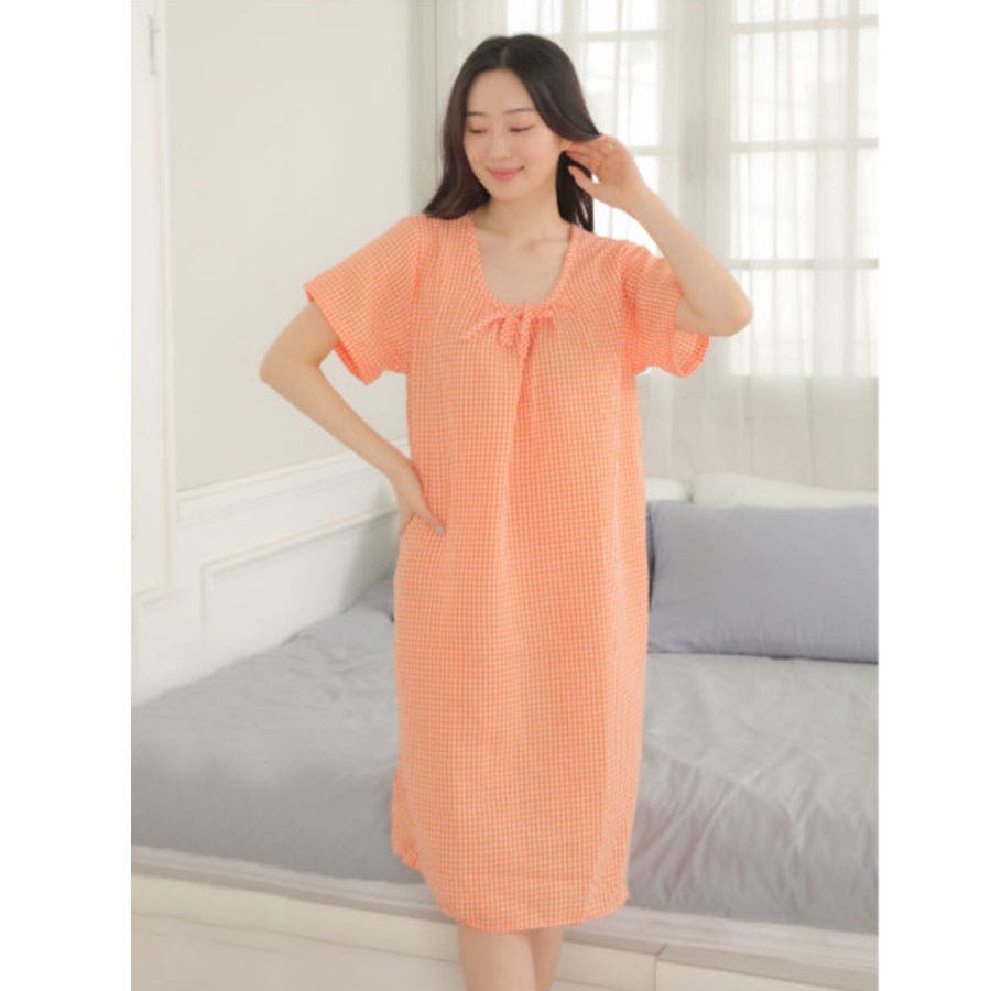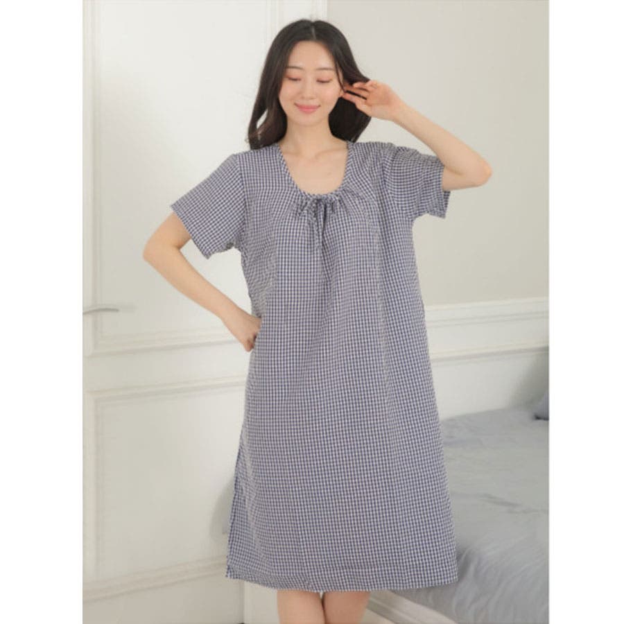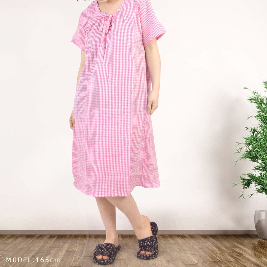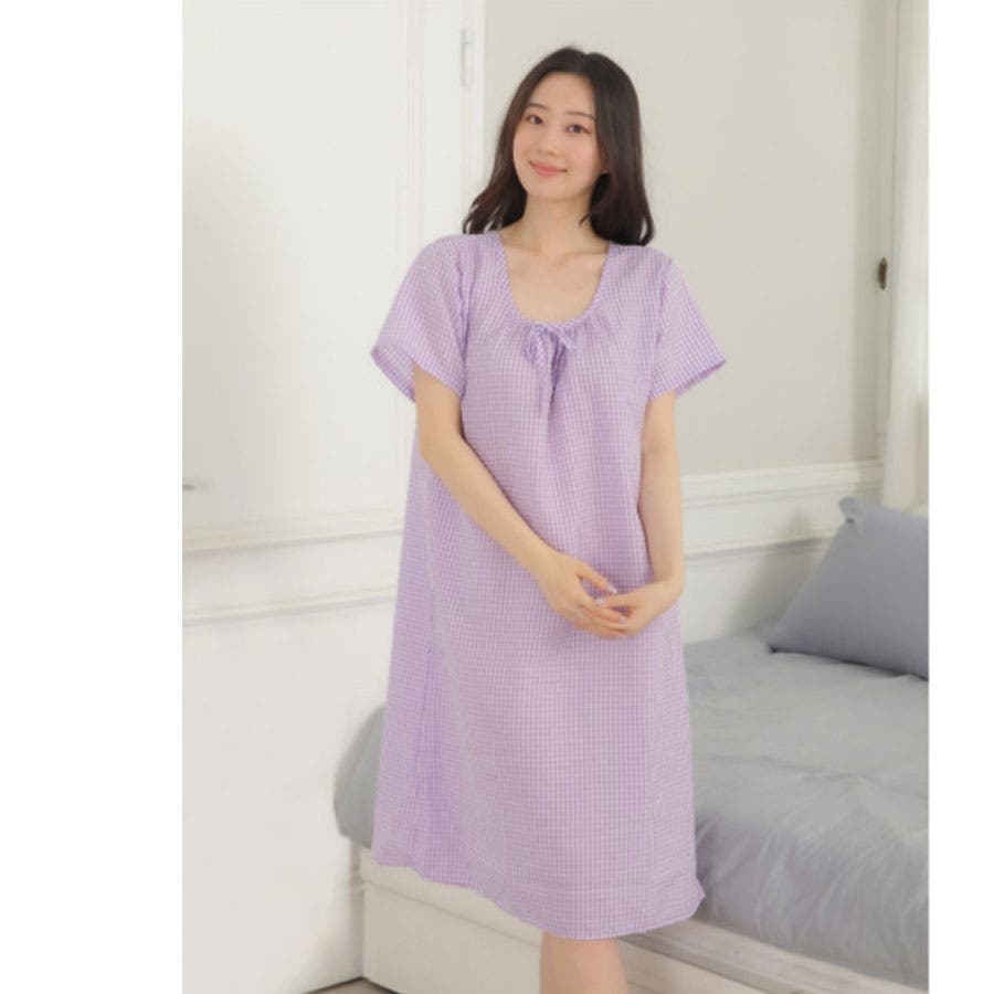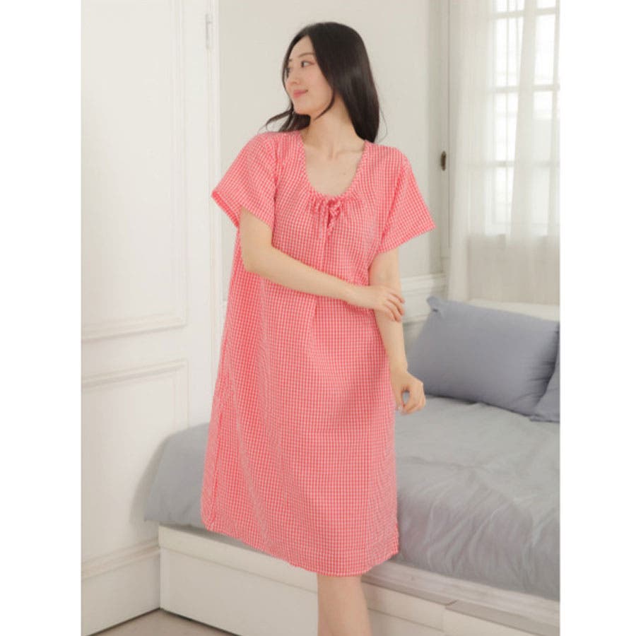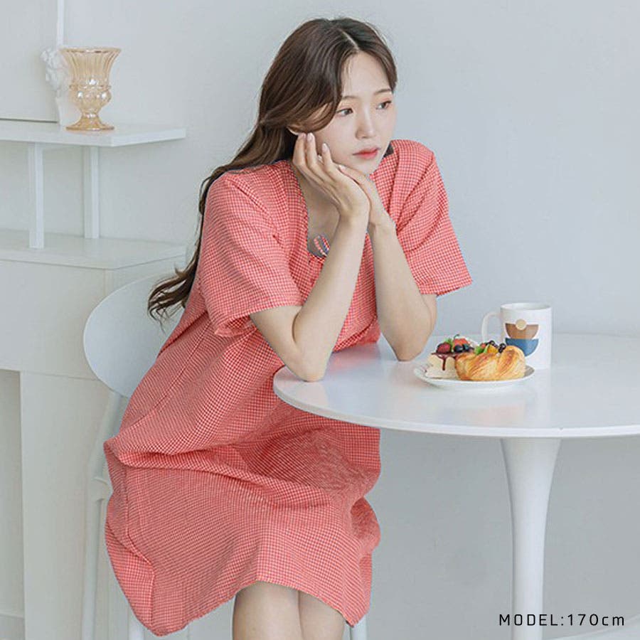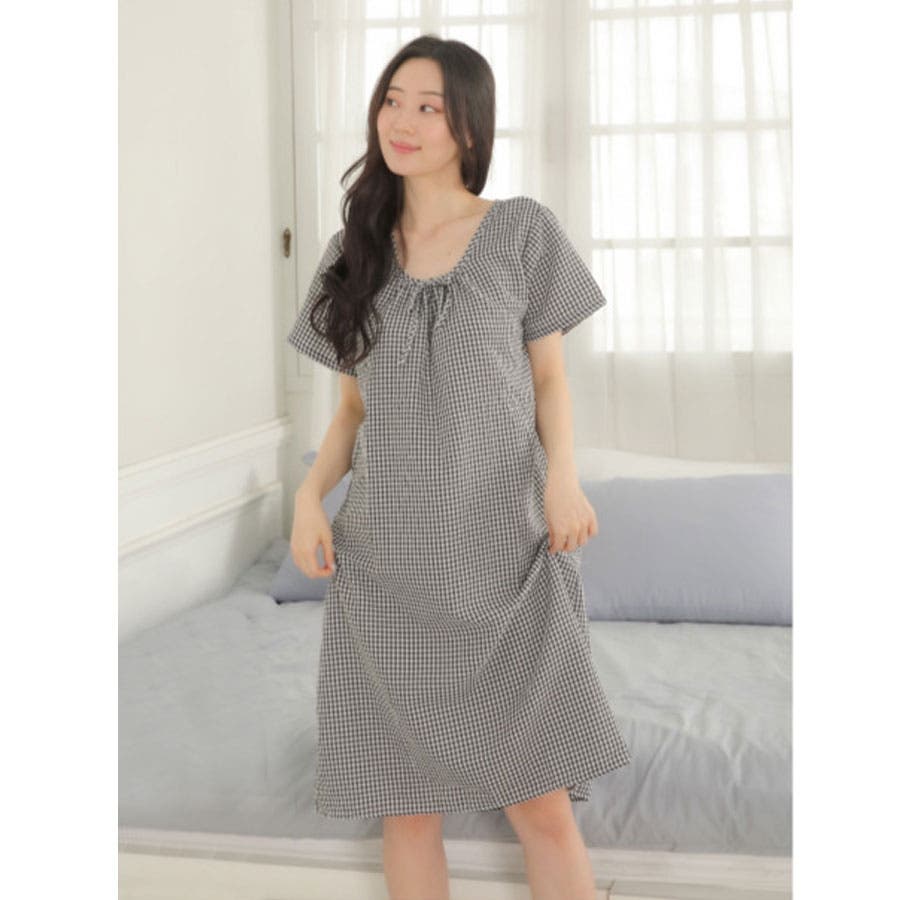 【パジャマ ルームウェア 夏 レディース ワンピース 半袖 部屋着 軽い 涼しい 涼し気 さらさら ふんわり Aライン ゆったり 夏用 夏向け マタニティ 女性用 リボン シボ 凹凸生地 軽量 ギンガムチェック リボン ギャザー ロング丈 ロングワンピ 快適】