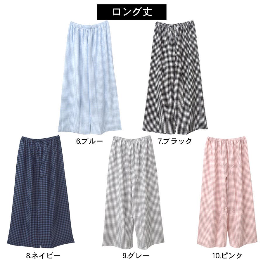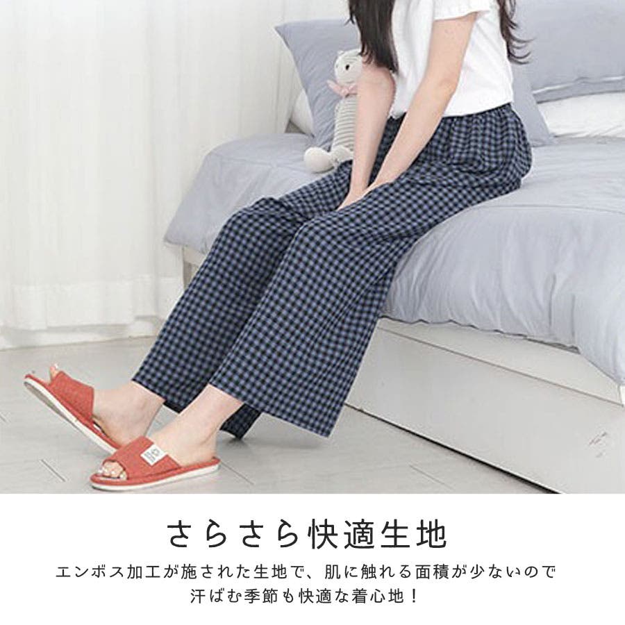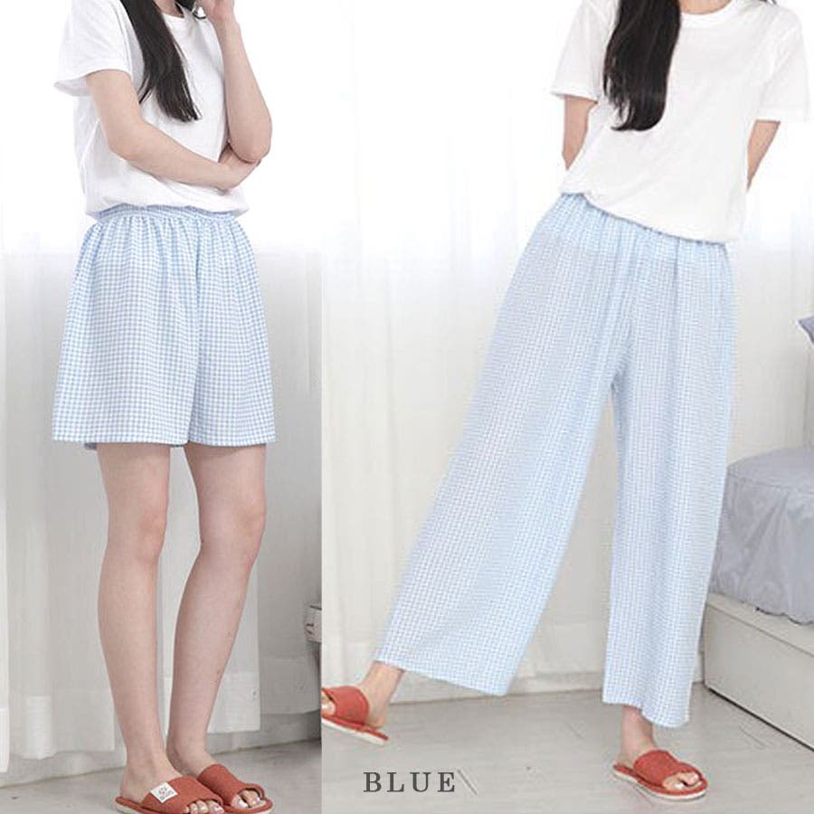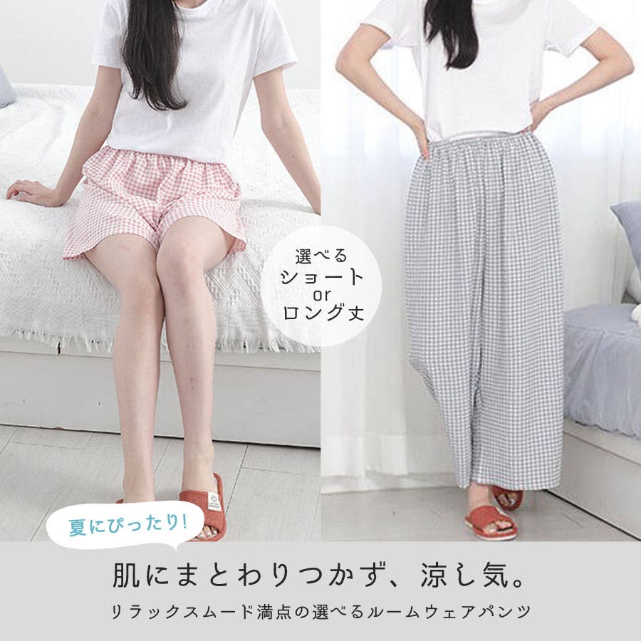 【パジャマ レディース 夏用 短パン 長ズボン ボトムス パンツ 夏 ショートパンツ ロングパンツ ゆったり 部屋着 ルームウェア ギンガムチェック チェック柄 涼しい 快適 軽い ワイド お揃い 楊柳 ガーゼ ウエストゴム 涼し気 リラックス 湯上がり お風呂上がり】