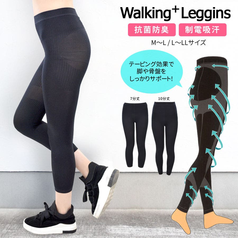 【レギンスパンツ レディース 黒 大きいサイズ 7分丈 10分丈 骨盤 サポート 美脚 スリム 細見せ 抗菌防臭 制電吸汗 ウォーキングプラス Walking+ M~L L~LL】