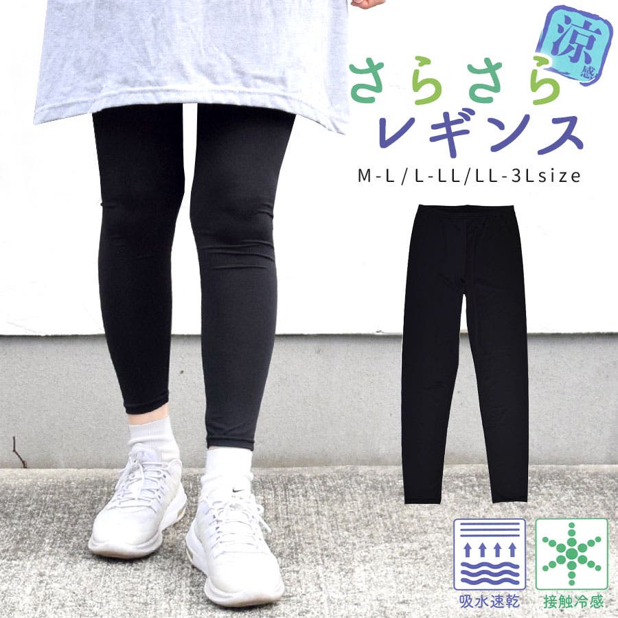 【レギンス パンツ レディース 10分丈 インナー さらさら 吸水速乾 接触冷感 ひんやり 涼感 涼しい ロング丈 黒 無地 シンプル なめらか 伸縮性 ストレッチ アンダーウェア 下着 薄手 M-L L-LL LL-3L サイズ】