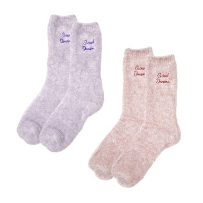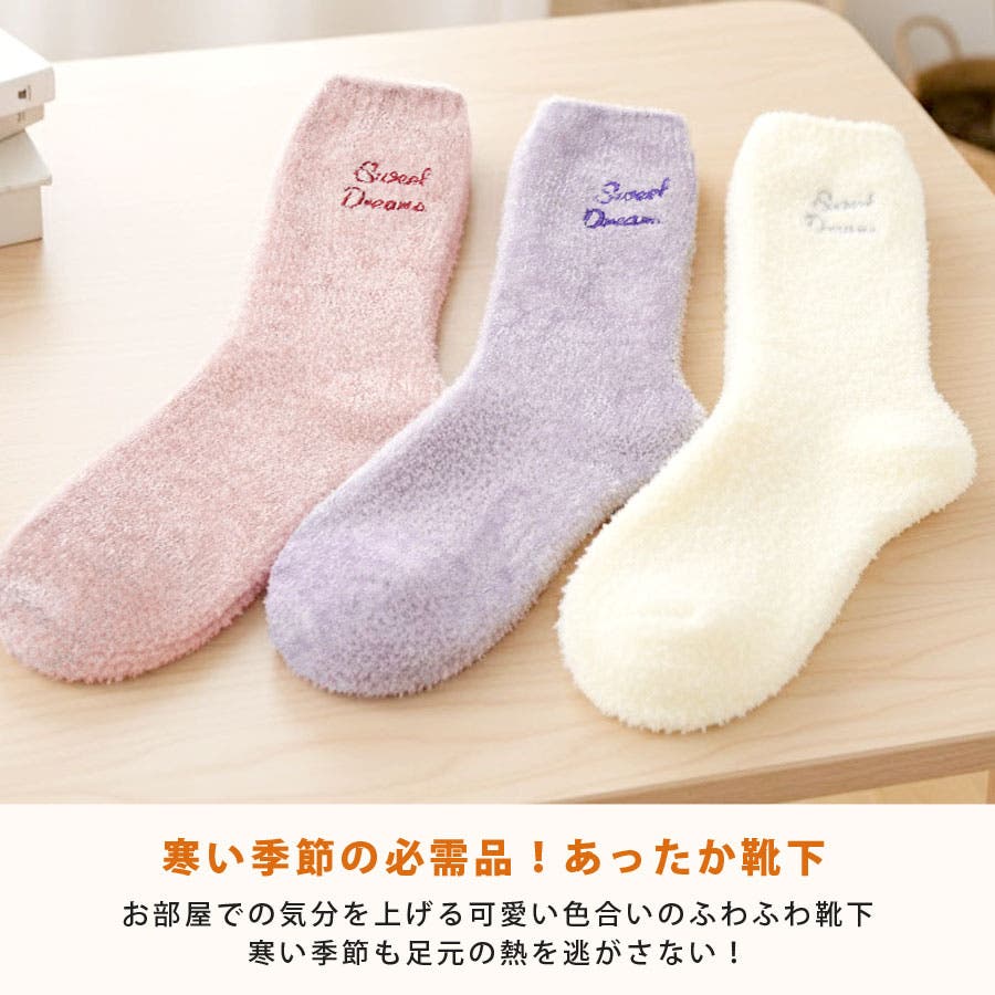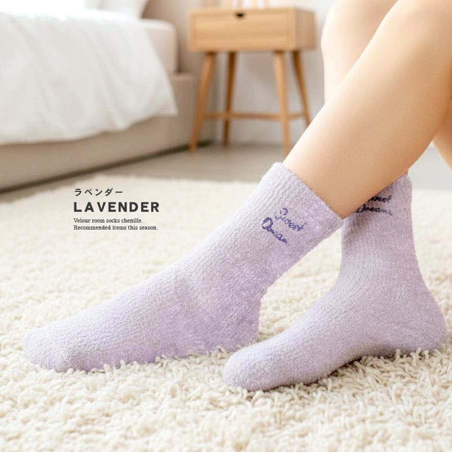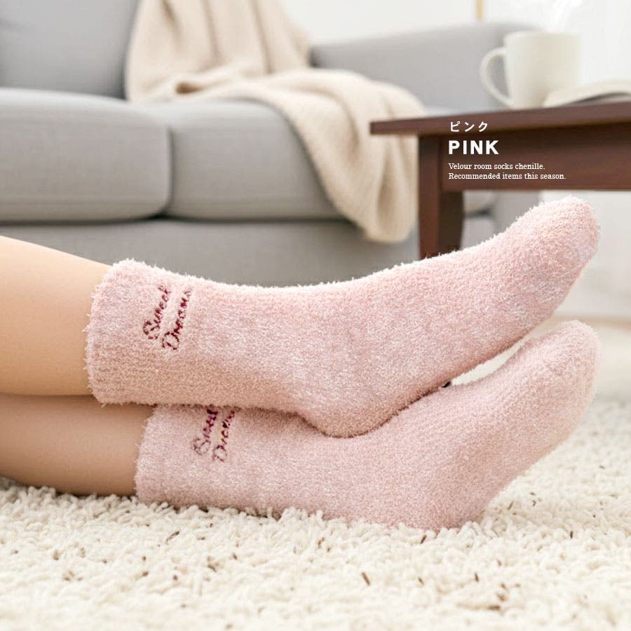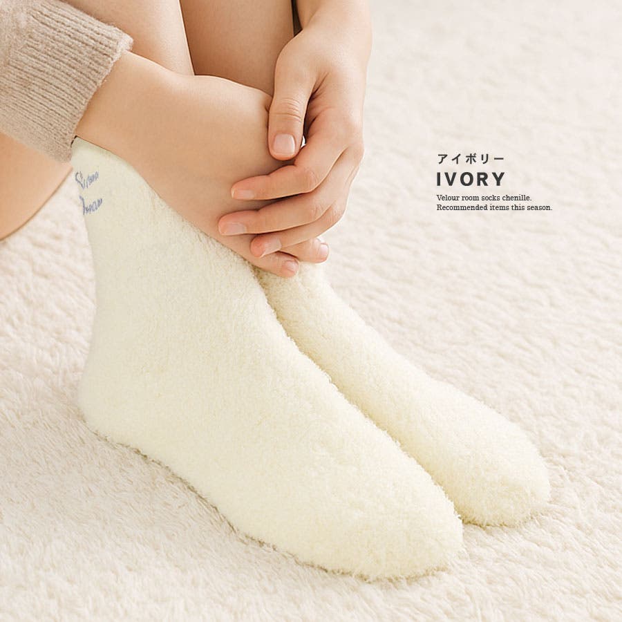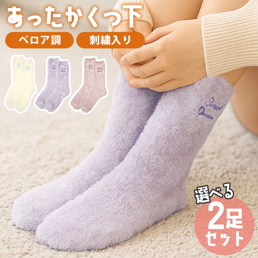 【あったか靴下 レディース 2足セット 選べる 刺繍 ベロア調 ふんわり なめらか 厚手 ルームソックス くつ下 くつした しっとり 無地 おしゃれ 暖かい 保温 防寒 ふわふわ 冷え対策 部屋着 文字入り】