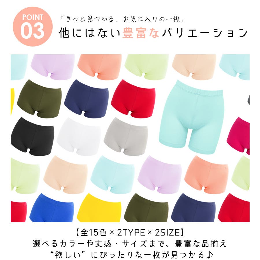 投稿日:2022.10.05インナーの見え防止に購入。短めなインナーパンツを探していたのでぴったりでした。お値段もお手頃で。とても履きやすかった。
