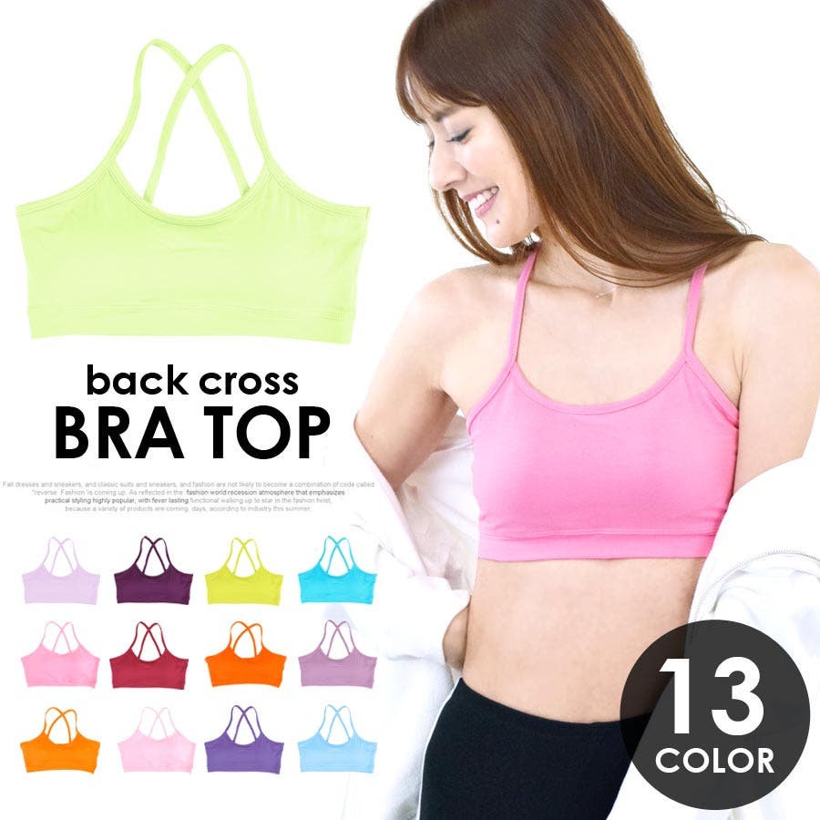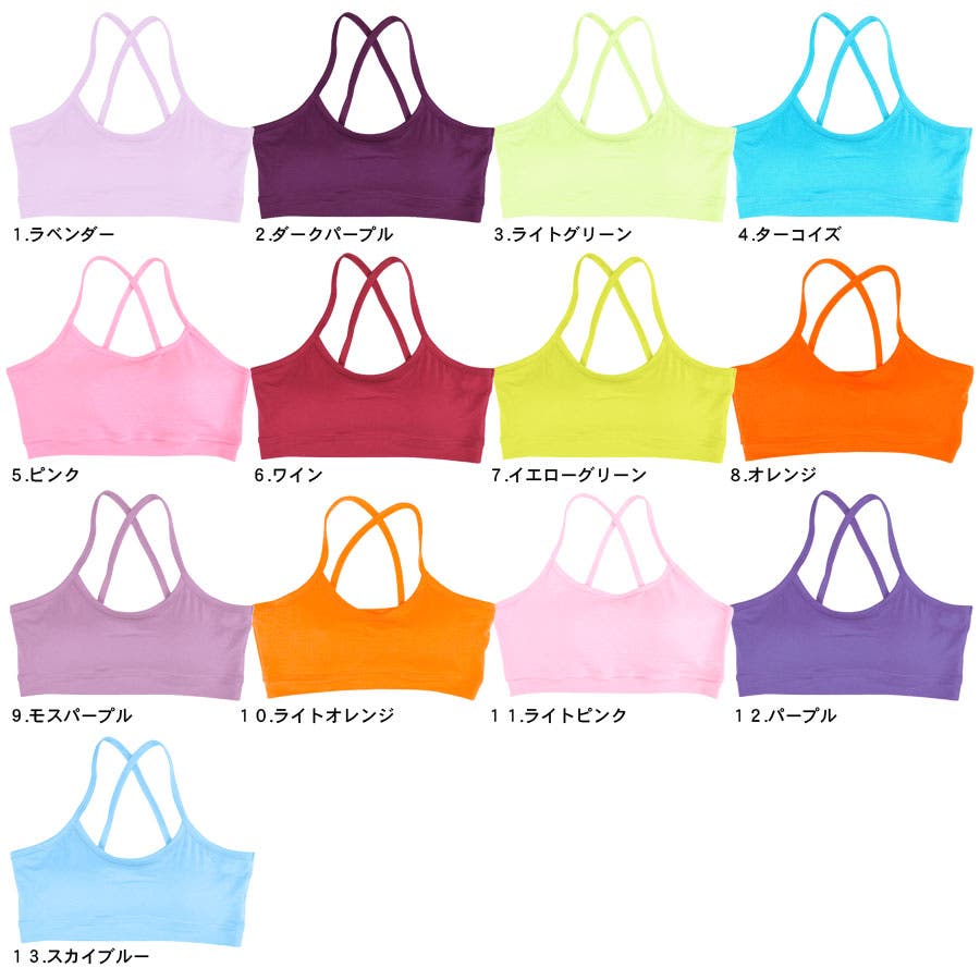 【ブラトップ バッククロス ブラジャー ナイトブラ スポーツブラ レディース インナー 下着 ノンワイヤー 肌着 キッズ ジュニアカップ付き パッド入り シンプル 無地 フィットネス ジム ヨガ ヨガウェア 部活 授乳 マタニティ】
